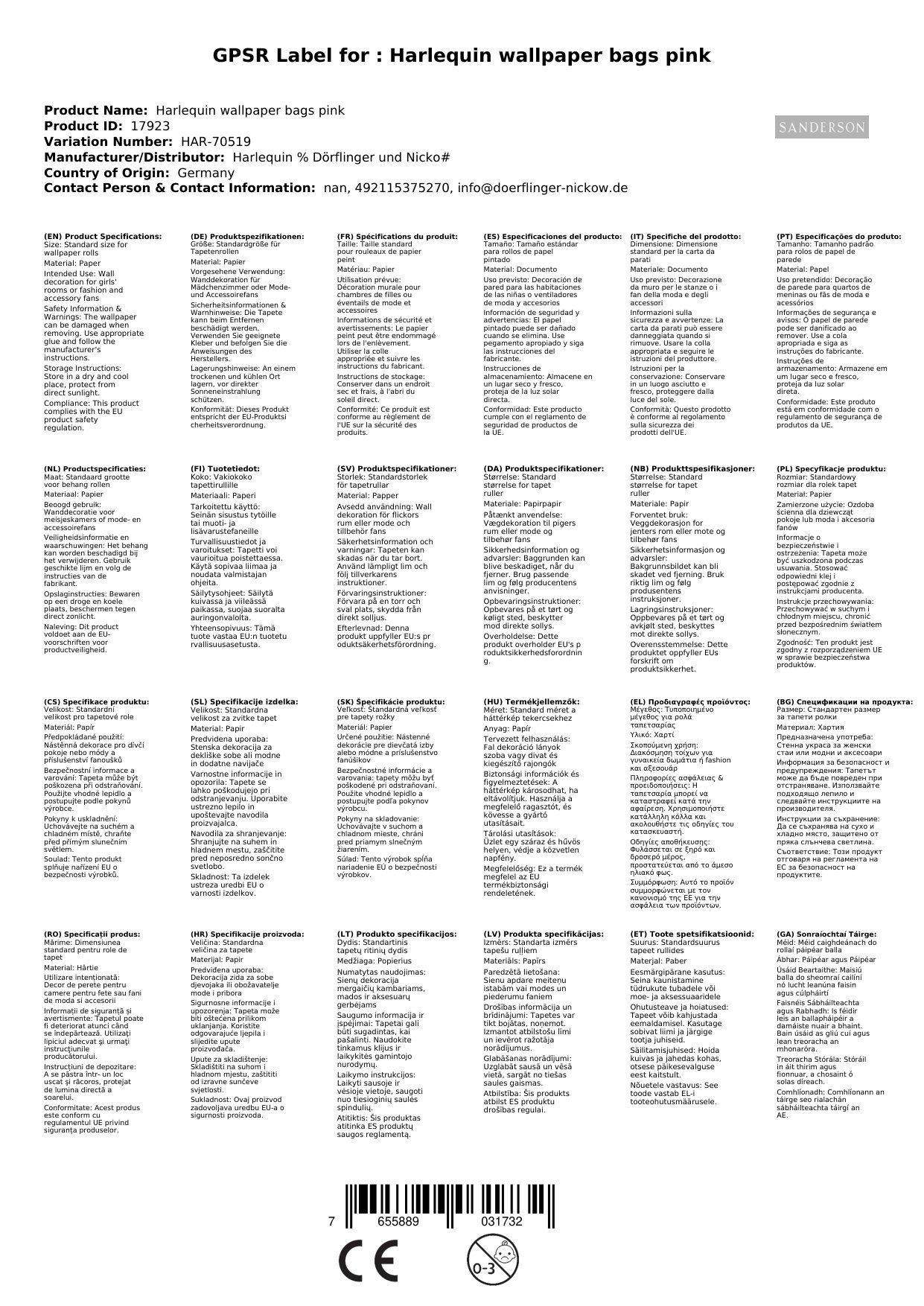 | sollte die tapete nicht lagernd sein, wird sie direkt nach ihrer bestellung beim hersteller in england geordert. die lieferzeit beträgt dann ca. 2 - 3 wochen. bereits mit der zweiten rolle ist die tapete innerhalb deutschlands versandkostenfrei. hinweis zu den fotos/farben bitte beachten sie, dass die farbdarstellung je nach bildschirm- und/oder computereinstellung varieren kann. auch können die farben in der darstellung vom original abweichen. wenn sie ganz sicher gehen wollen, dann nutzen sie bitte unseren musterservice. | | sie haben mehrere möglichkeiten passende stoffe und tapeten zu finden 1. ein erster hinweis ist immer das kürzel am anfang der artikelnummer. in diesem fall 'har'. alle artikel, die mit der selben buchstabenfolge beginnen entstammen der selben kollektion. so können sie schon einmal sicher sein, dass hier eine zusammengehörigkeit besteht. 2. in diesem internetladen gibt es in den jeweiligen kategorien auch immer eine zusammenfassung der kollektionen in einer unterkategorie. dort sind alle artikel einer kollektion präsentiert. 3. wir haben auch eine hauptkategorie 'kollektionen'. dort finden sie auch alle dekoprodukte passend zusammengefasst 4. sie haben die möglichkeit muster zu bestellen. schauen sie diesbzgl. bitte in unsere kategorie 'musterservice' |