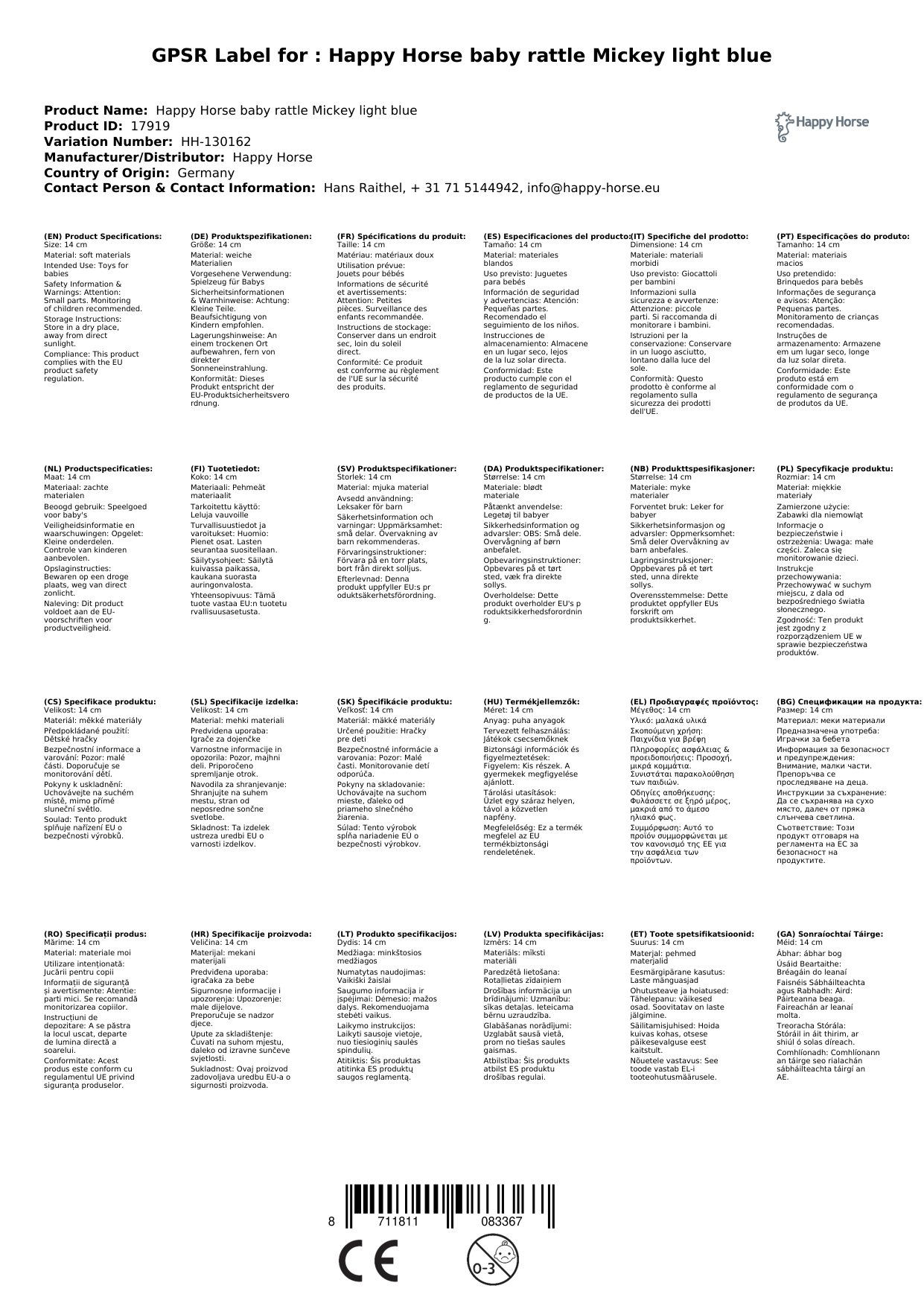 Stellen Sie eine Frage, um mehr über das Produkt zu erfahrenHappy Horse Babyrassel Affe Mickey hellblau - Der Kuschelige Begleiter für Ihr Baby