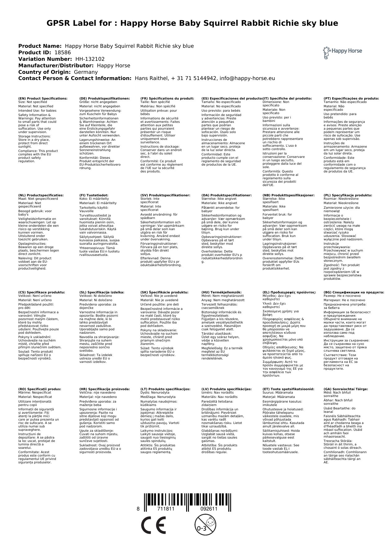 Stellen Sie eine Frage, um mehr über das Produkt zu erfahrenHappy Horse Baby Schmusetuch Hase Richie himmelblau - Weich und Kuschelig, ein unverzichtbarer Begleiter für Ihr Baby!