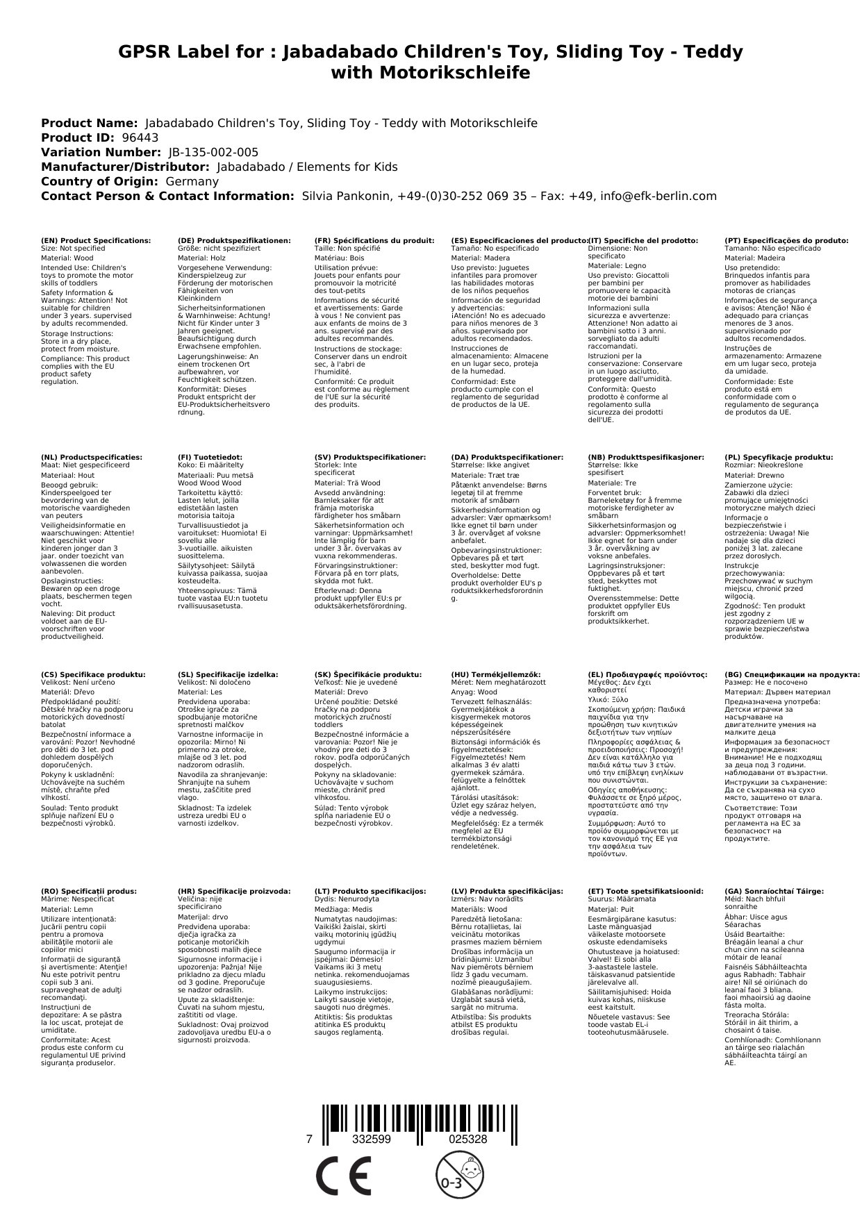Stellen Sie eine Frage, um mehr über das Produkt zu erfahrenJabadabado Kinderspielzeug, Schiebetier, Schiebespielzeug - Teddy mit Motorikschleife