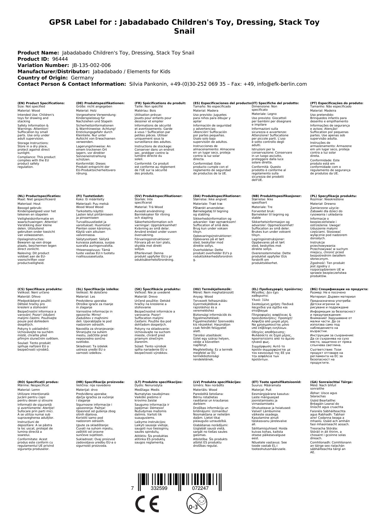 Jabadabado Kinderspielzeug, Nachziehtier, Stapelspielzeug Schnecke