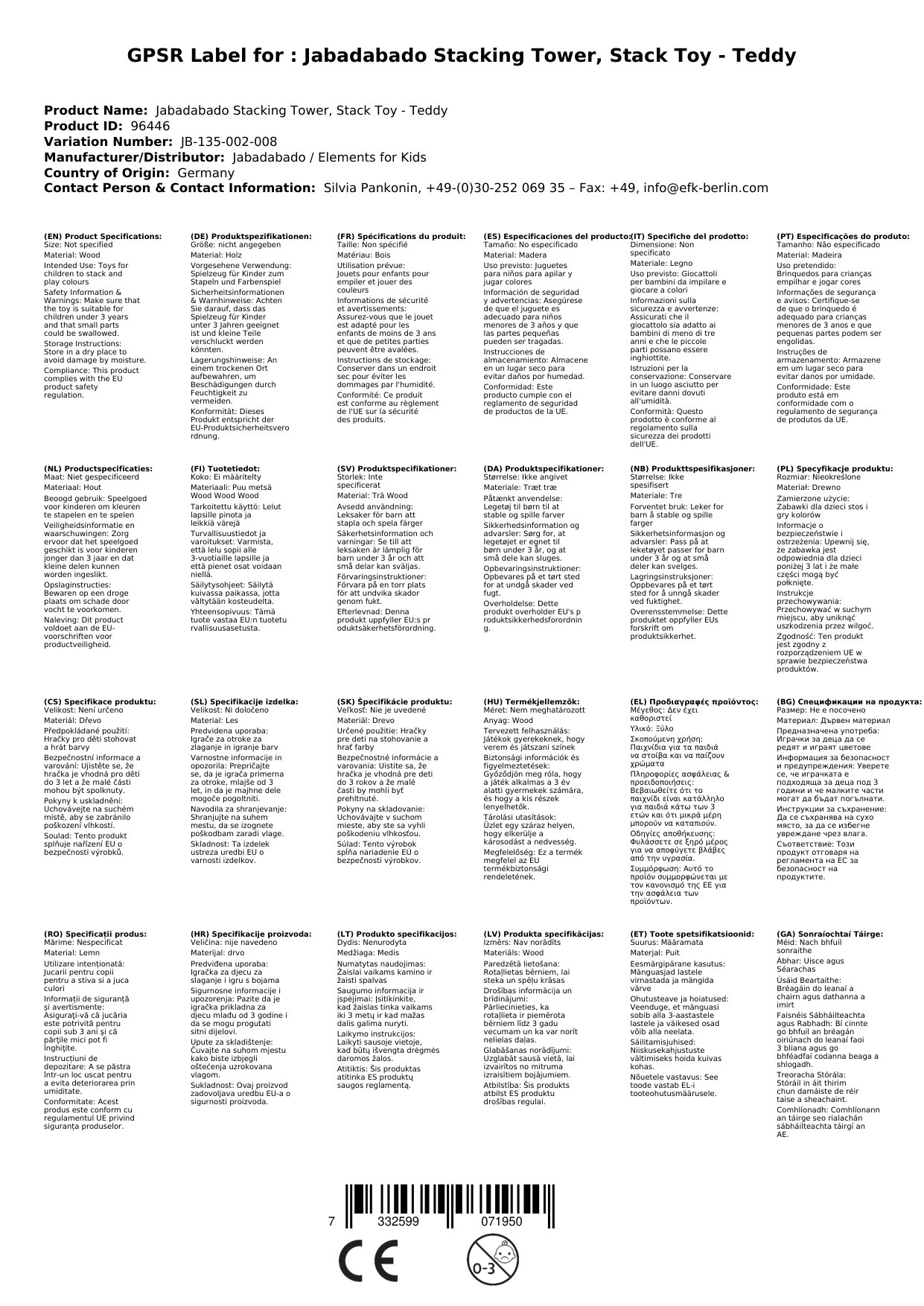 Stellen Sie eine Frage, um mehr über das Produkt zu erfahrenJabadabado Stapelturm, Stapelspielzeug - Teddy