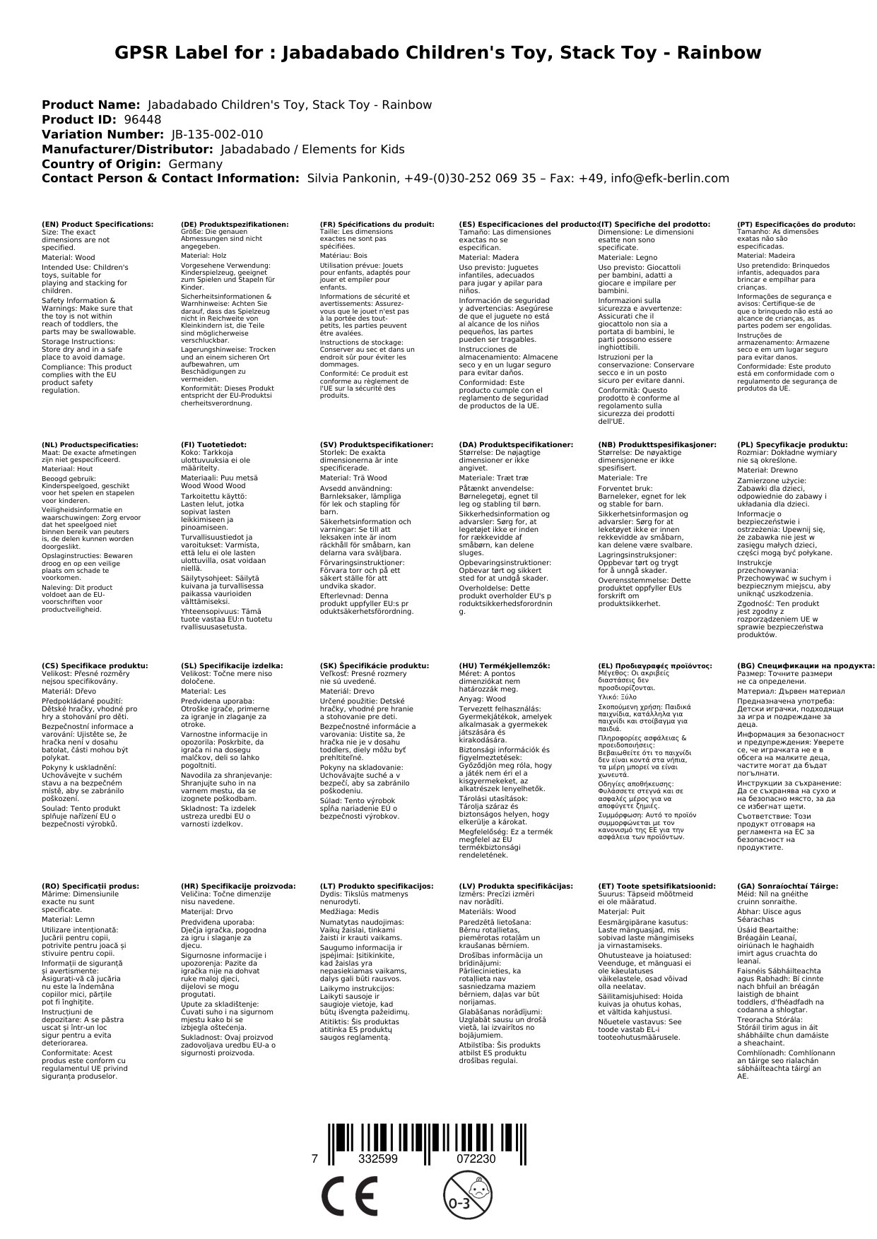 Stellen Sie eine Frage, um mehr über das Produkt zu erfahrenJabadabado Kinderspielzeug, Stapelspielzeug - Regenbogen