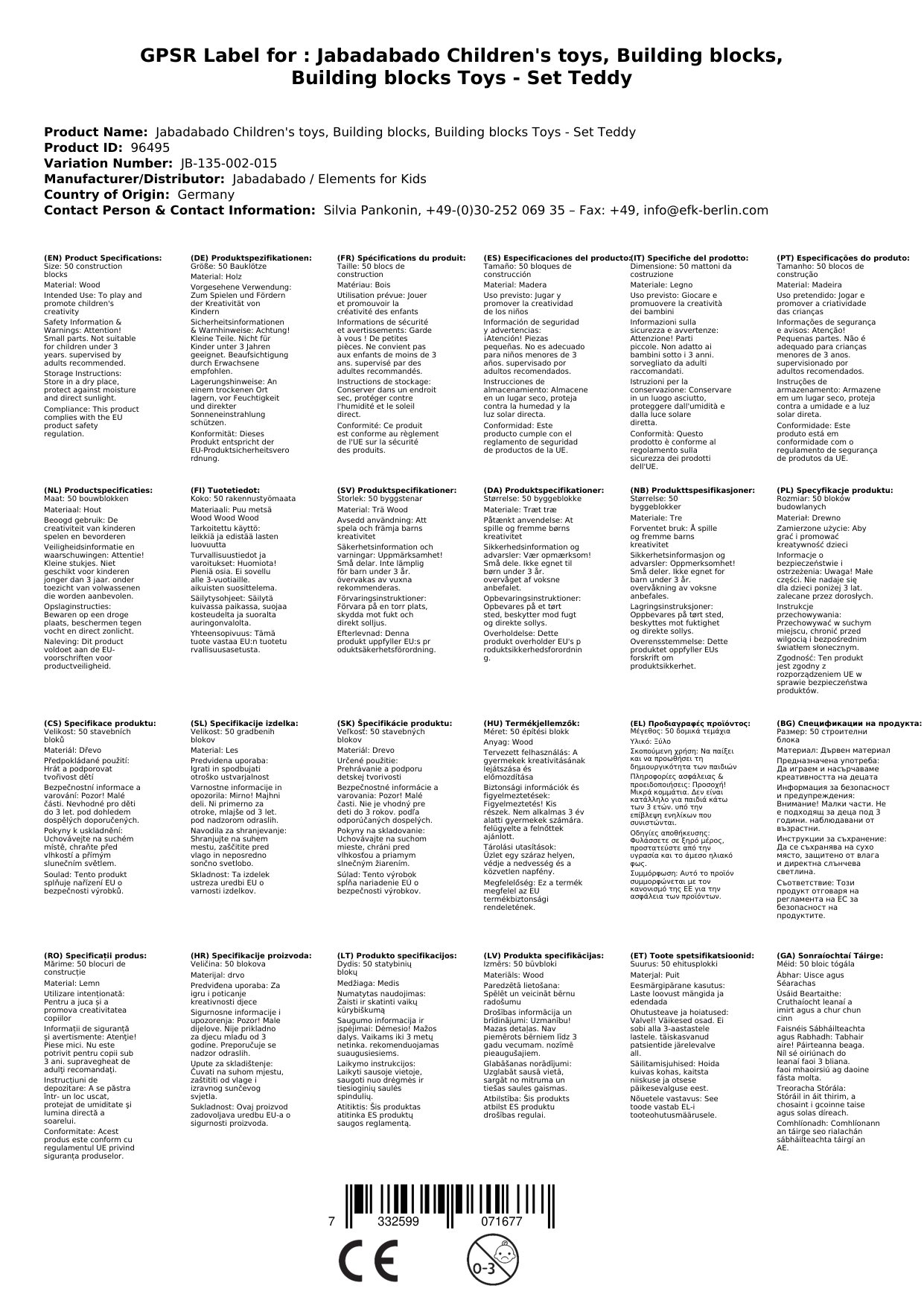 Stellen Sie eine Frage, um mehr über das Produkt zu erfahrenJabadabado Kinderspielzeug, Bauklötze, Bausteine Spielzeug - Set Teddy