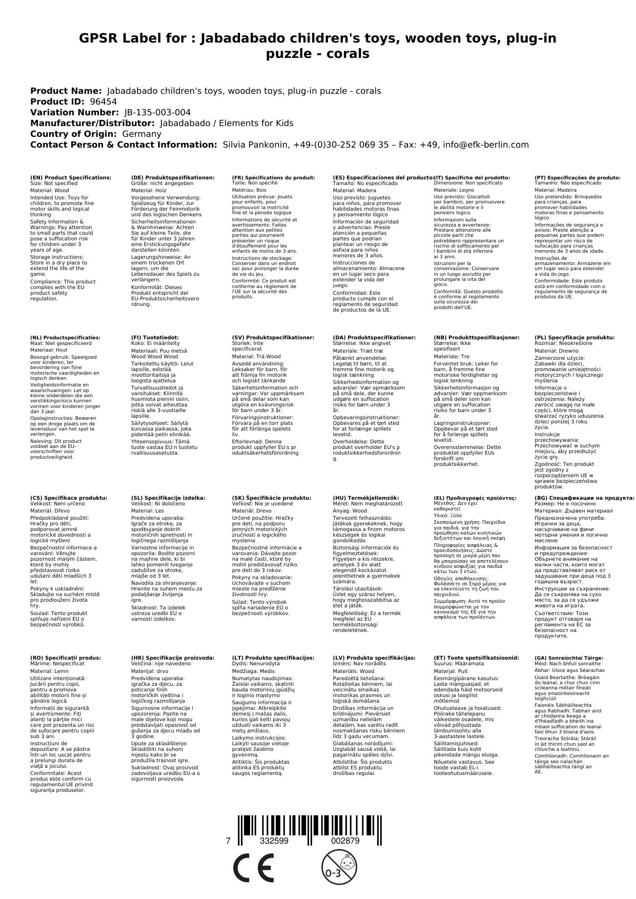 Stellen Sie eine Frage, um mehr über das Produkt zu erfahrenJabadabado Kinderspielzeug, Holzspielzeug, Steckpuzzle - Korallen