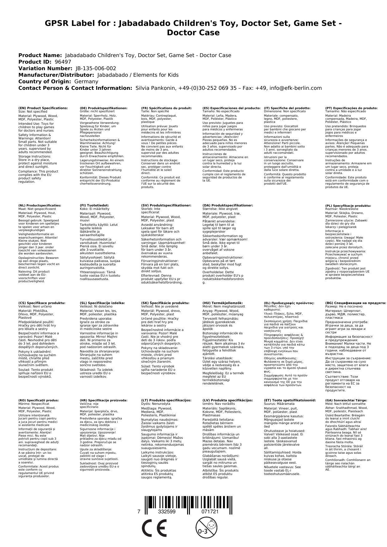 Stellen Sie eine Frage, um mehr über das Produkt zu erfahrenJabadabado Kinderspielzeug, Doctor Set, Spielset - Arztkoffer