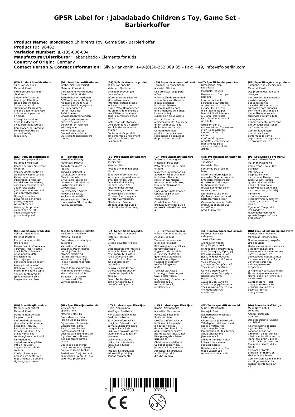 Stellen Sie eine Frage, um mehr über das Produkt zu erfahrenJabadabado Kinderspielzeug, Spielset - Barbierkoffer