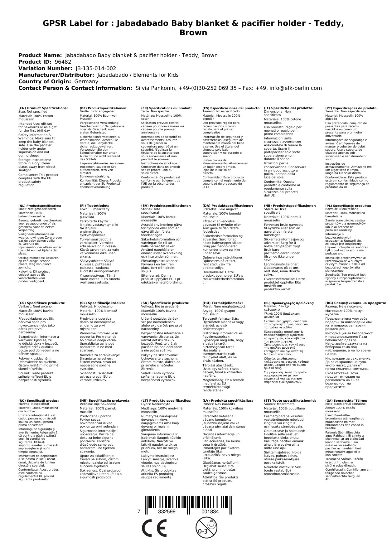 Stellen Sie eine Frage, um mehr über das Produkt zu erfahrenJabadabado Geschenkset Babydecke & Schnullerhalter - Teddy, Braun