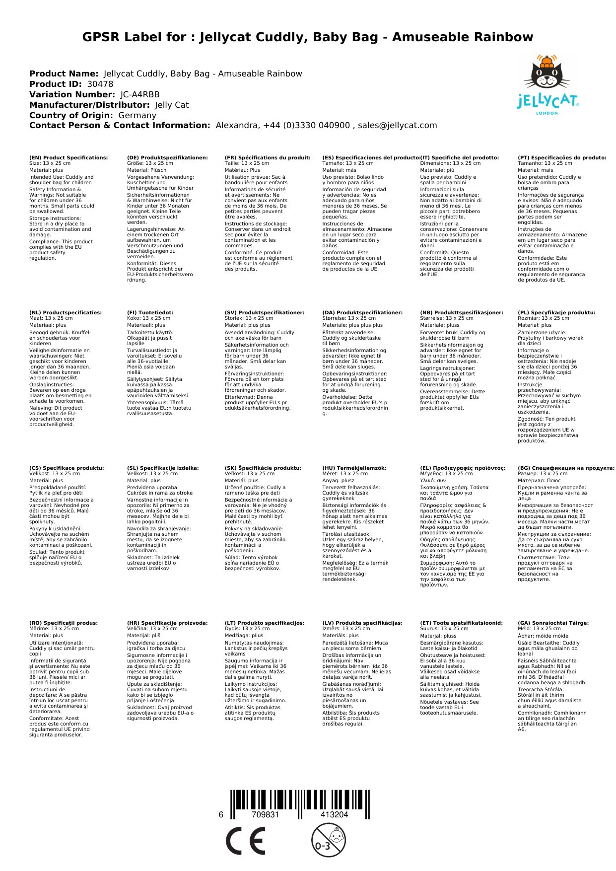 Stellen Sie eine Frage, um mehr über das Produkt zu erfahrenJellycat Kuscheltier, Babytasche - Amuseable Rainbow