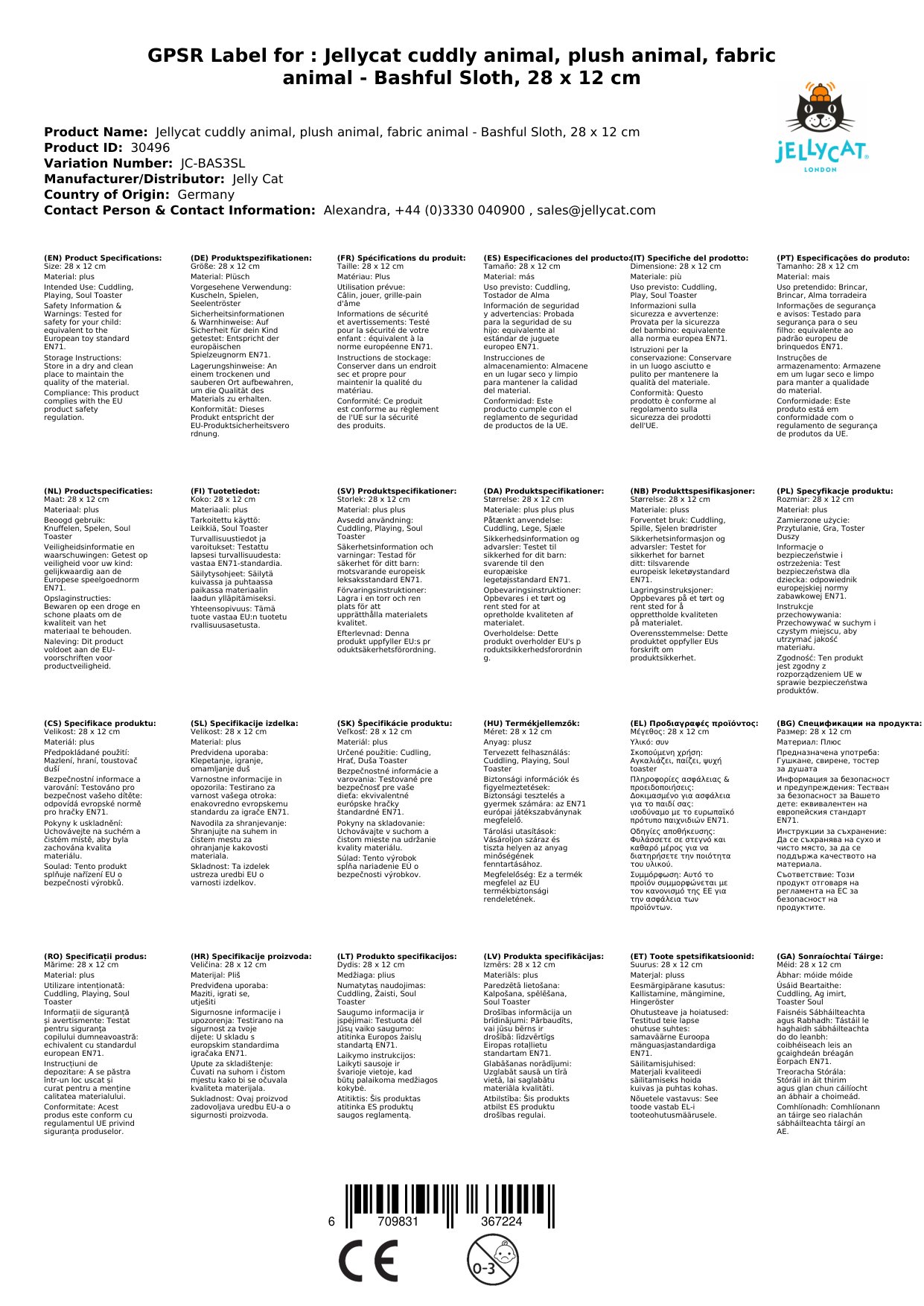 Das Bashful Sloth Stofftier ist ein wunderschönes Geschenk für Neugeborene und Kinder. Es ist das perfekte Spielzeug für jedes Kinderzimmer und Spielzimmer. Das Material besteht aus 100% Polyester und sollte per Handwäsche mit milder Seife und kaltem Wasser gereinigt werden. Danach kann es vorsichtig mit einem Föhn auf niedrigster Hitze getrocknet werden.