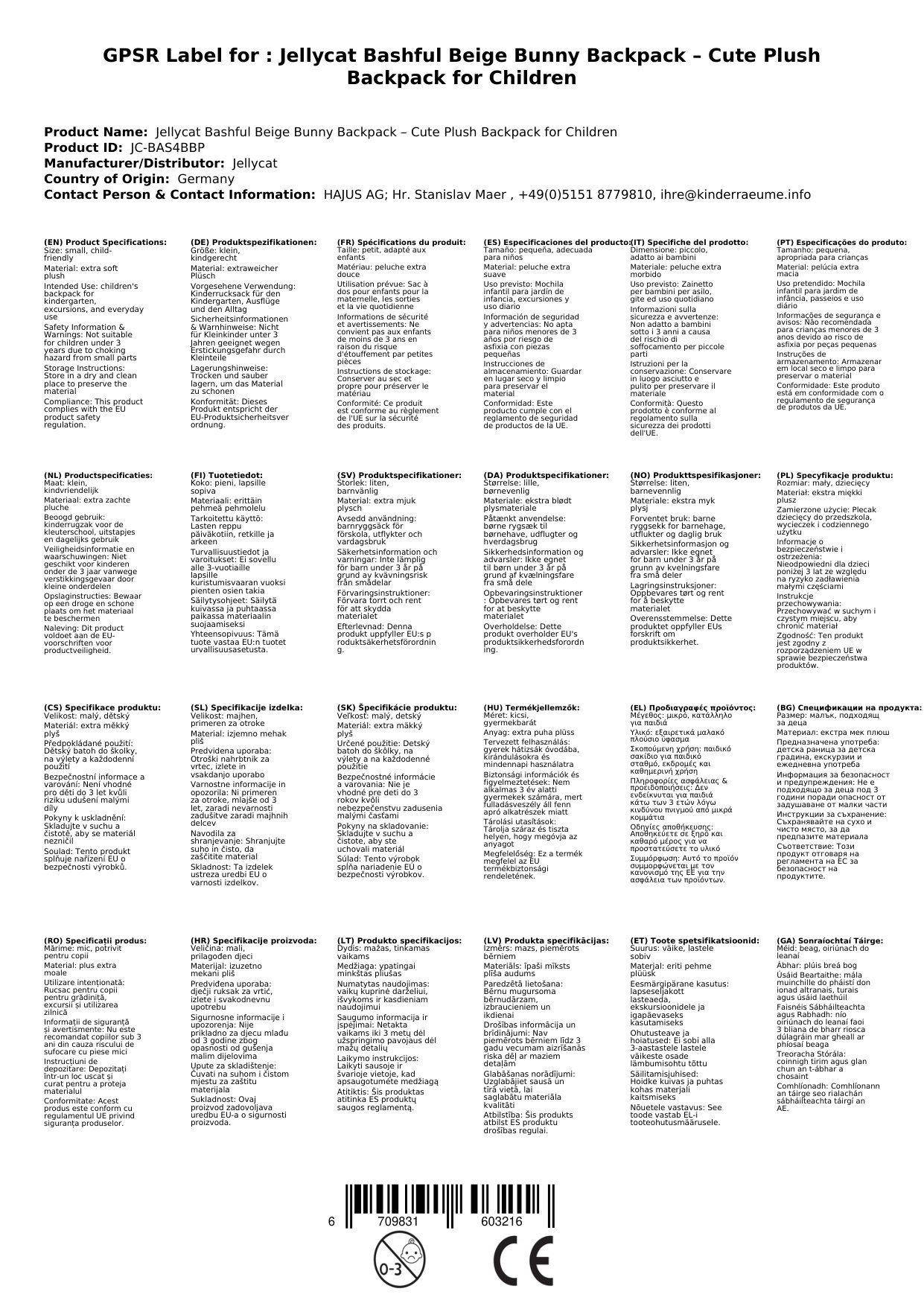 Absolut. Jellycat verwendet nur hochwertige, schadstoffgeprüfte Materialien, die für ihre Weichheit und Sicherheit bekannt sind. Sie können sicher sein, dass der Rucksack für Ihr Kind unbedenklich ist.