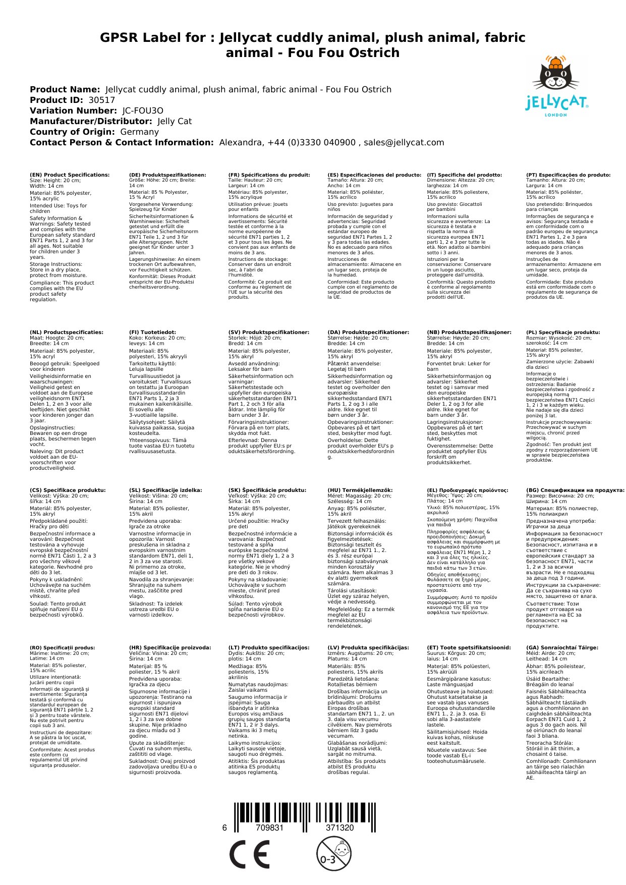 Stellen Sie eine Frage, um mehr über das Produkt zu erfahrenJellycat Kuscheltier, Plüschtier, Stofftier - Fou Fou Ostrich