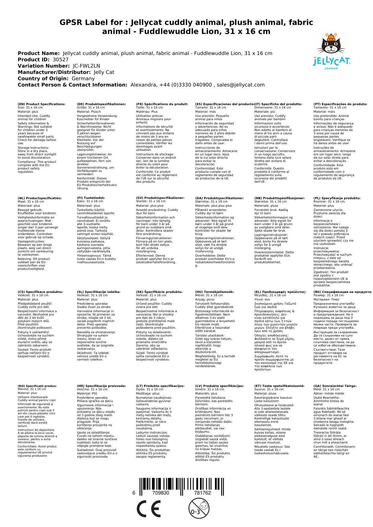 Stellen Sie eine Frage, um mehr über das Produkt zu erfahrenJellycat Kuscheltier, Plüschtier, Stofftier - Fuddlewuddle Lion, 31 x 16 cm