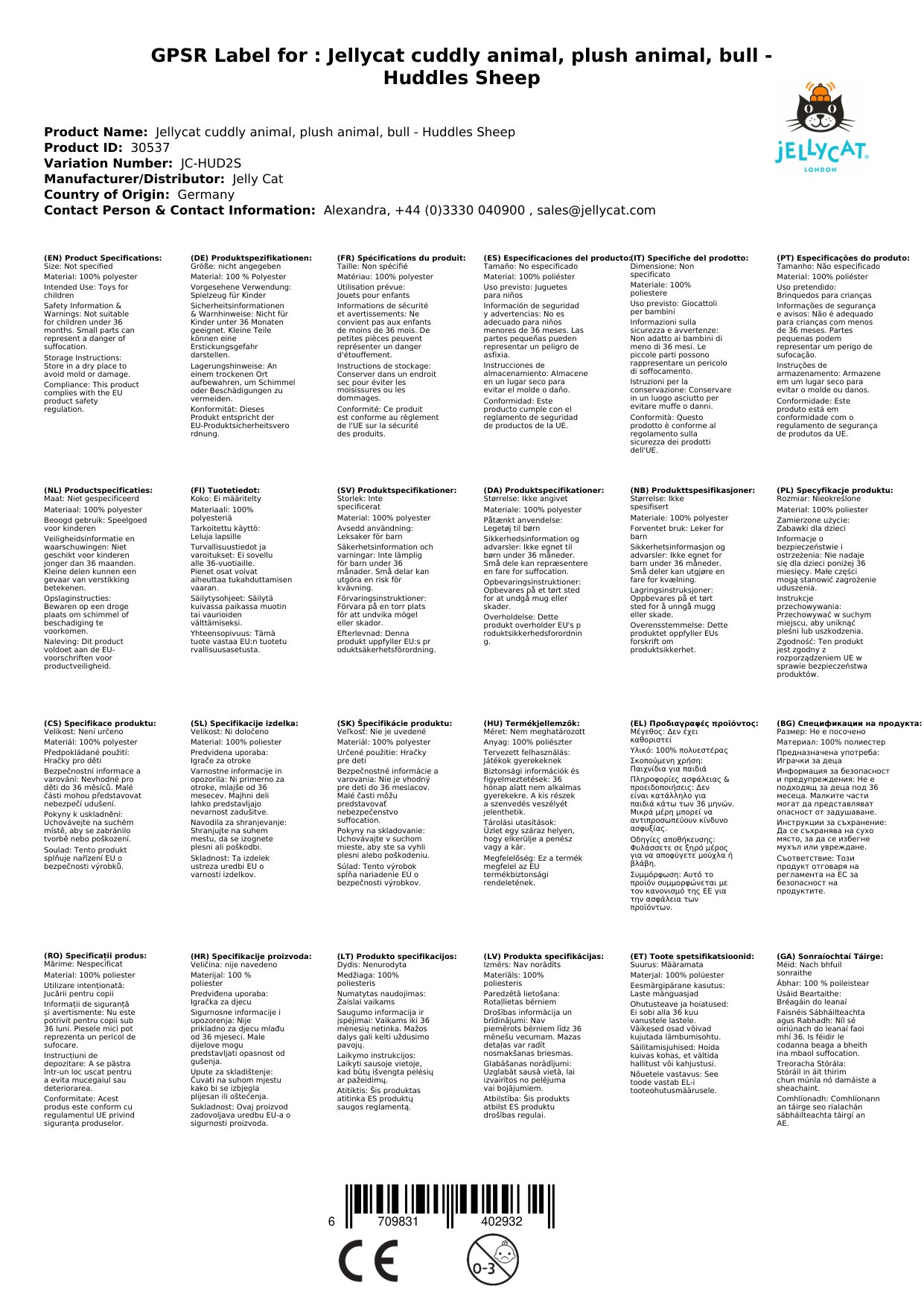 - Getestet und erfüllt die europäische Sicherheitsnorm für Spielzeug: EN71 Teile 1, 2 und 3, für alle Altersgruppen. Von Geburt an geeignet.