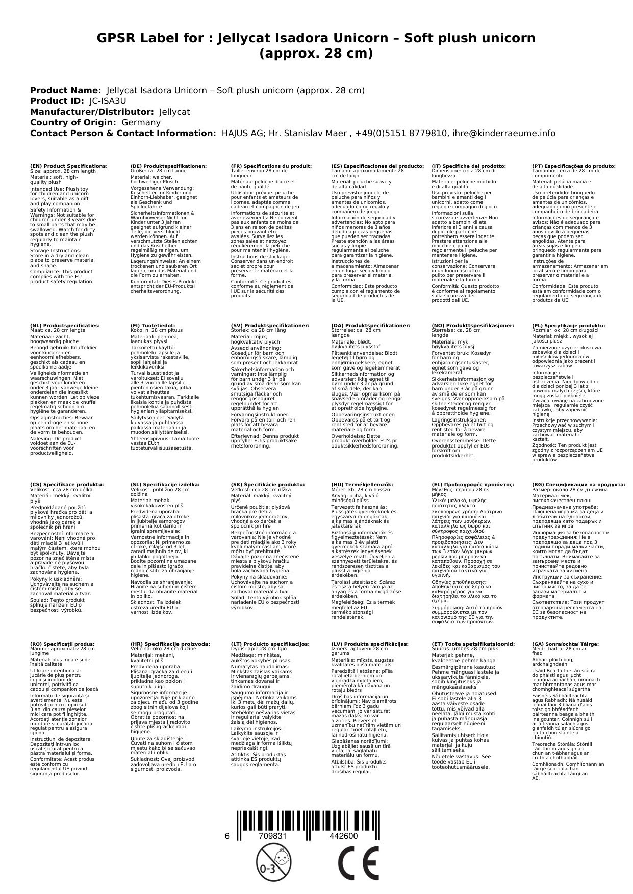 - Pflege: Sollte das Einhorn einmal eine Auffrischung benötigen, reinigen Sie es bitte nur oberflächlich mit einem feuchten Tuch. Vermeiden Sie starkes Waschen, um die Weichheit des Plüschs zu erhalten.
