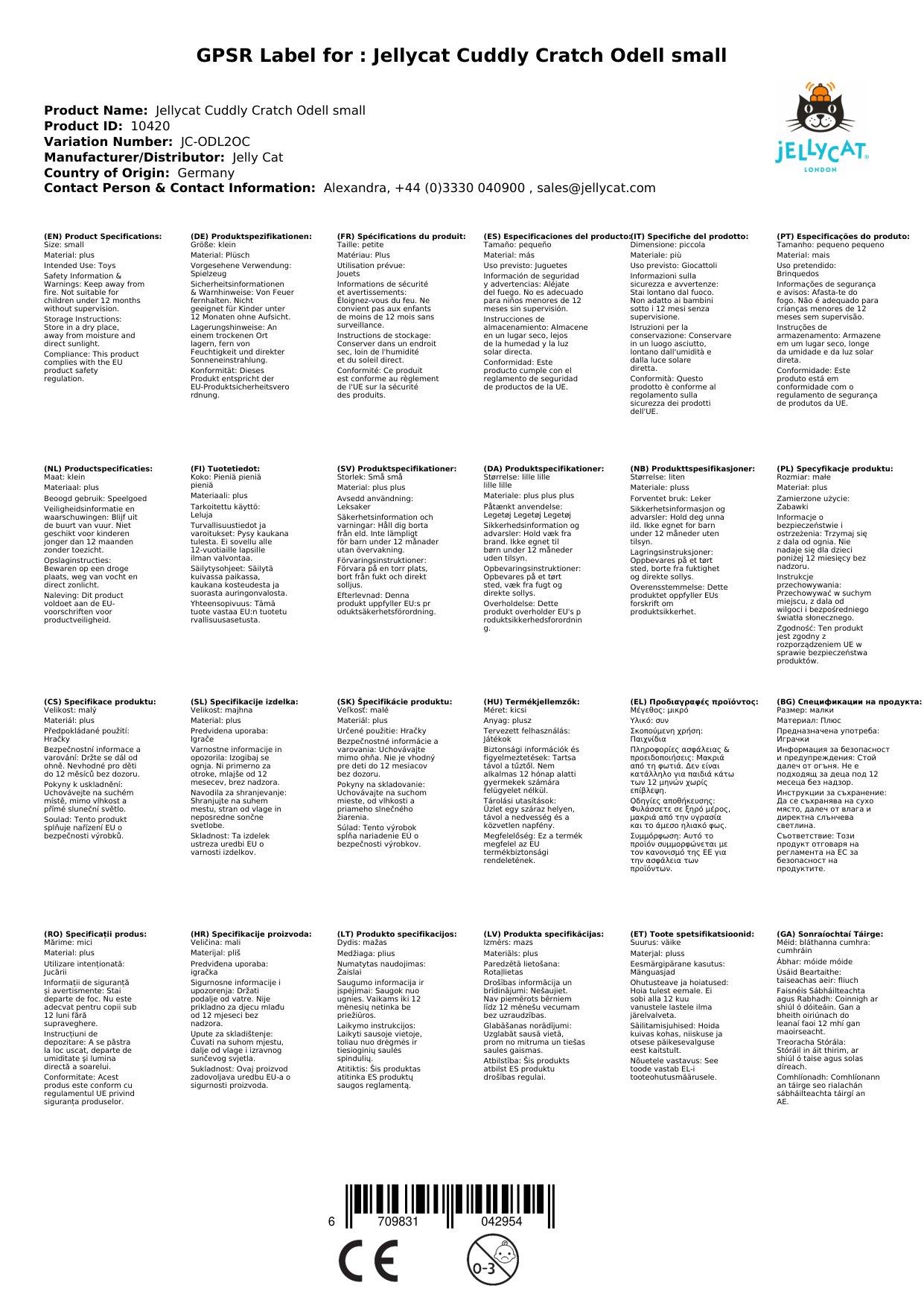 Sollte das Kuscheltier nicht bei uns lagern, wird es umgehend für Sie bei Jellycat in London bestellt. Die Lieferzeit ist oben neben dem Produktfoto angegeben. Sobald sich das Paket auf die Reise zu Ihnen macht, erhalten Sie eine entsprechende Information per Mail. Sie erhalten natürlich auch eine Link, mit dem Sie gut verfolgen können, wann - ziemlich genau sogar - mit der Zustellung zu rechnen sein wird.