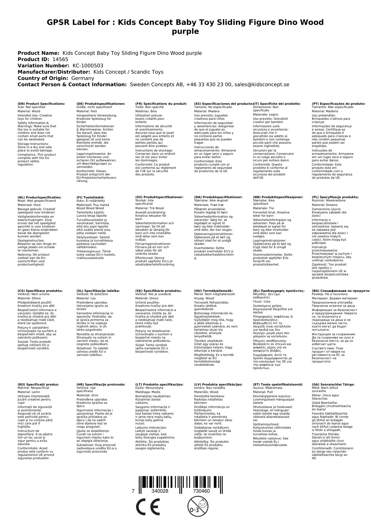 Kids Concept Baby Spielzeug Schiebefigur Dino Holz lila