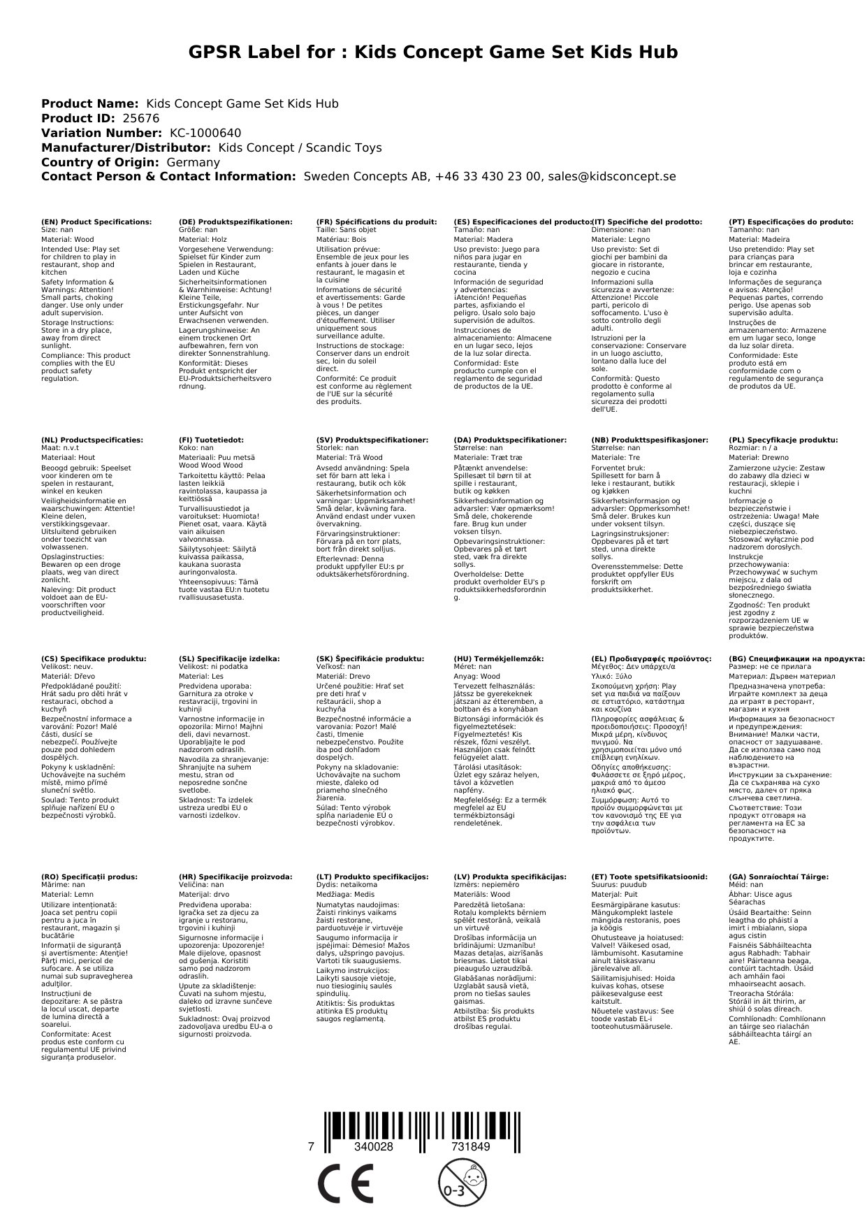 Stellen Sie eine Frage, um mehr über das Produkt zu erfahrenDas Holzspielset eignet sich perfekt zum Spielen mit Restaurant, Laden und Küche. Die Holzkiste enthält: 2 Sorten Nudeln: Spaghetti und Rigatoni 1 Packung Reis 2 Kartoffeln 6 grüne Bohnen 1 Knoblauch 1 Stück Fleisch 1 Fischfilet 1 ganzer Fisch, der auf der einen Seite roh und auf der anderen Seite gekocht ist. Das Set enthält außerdem Salz- und Pfefferstreuer, die beim Drehen klicken. Die Nudeln oder andere Spiellebensmittel können in den beiden mitgelieferten Papiertüten aufbewahrt werden. Das gesamte Zubehör wird in einer Holzkiste geliefert. Entdecken Sie weitere Spiellebensmittel und Zubehörteile in der Kid's Hub Serie.