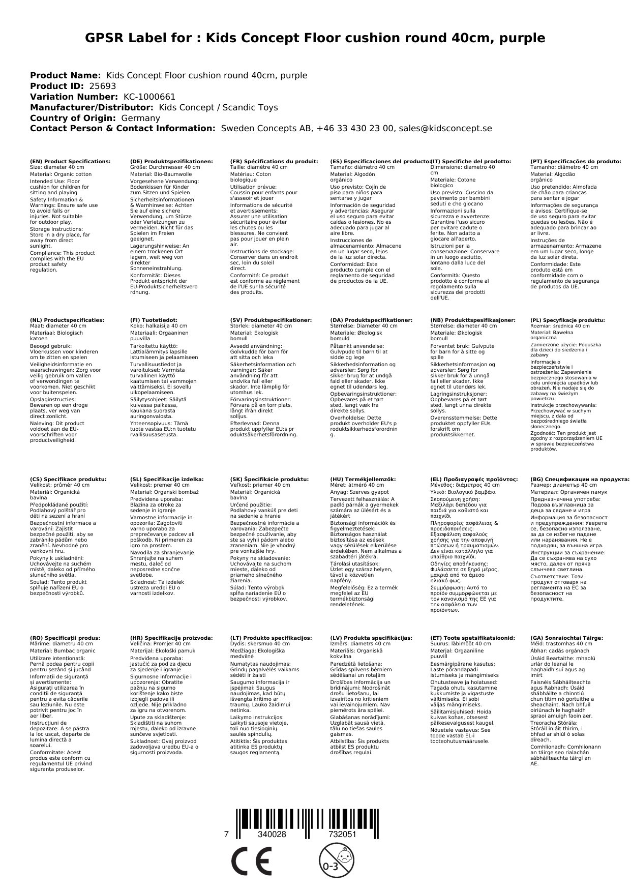 Kids Concept Bodenkissen rund 40cm, lila