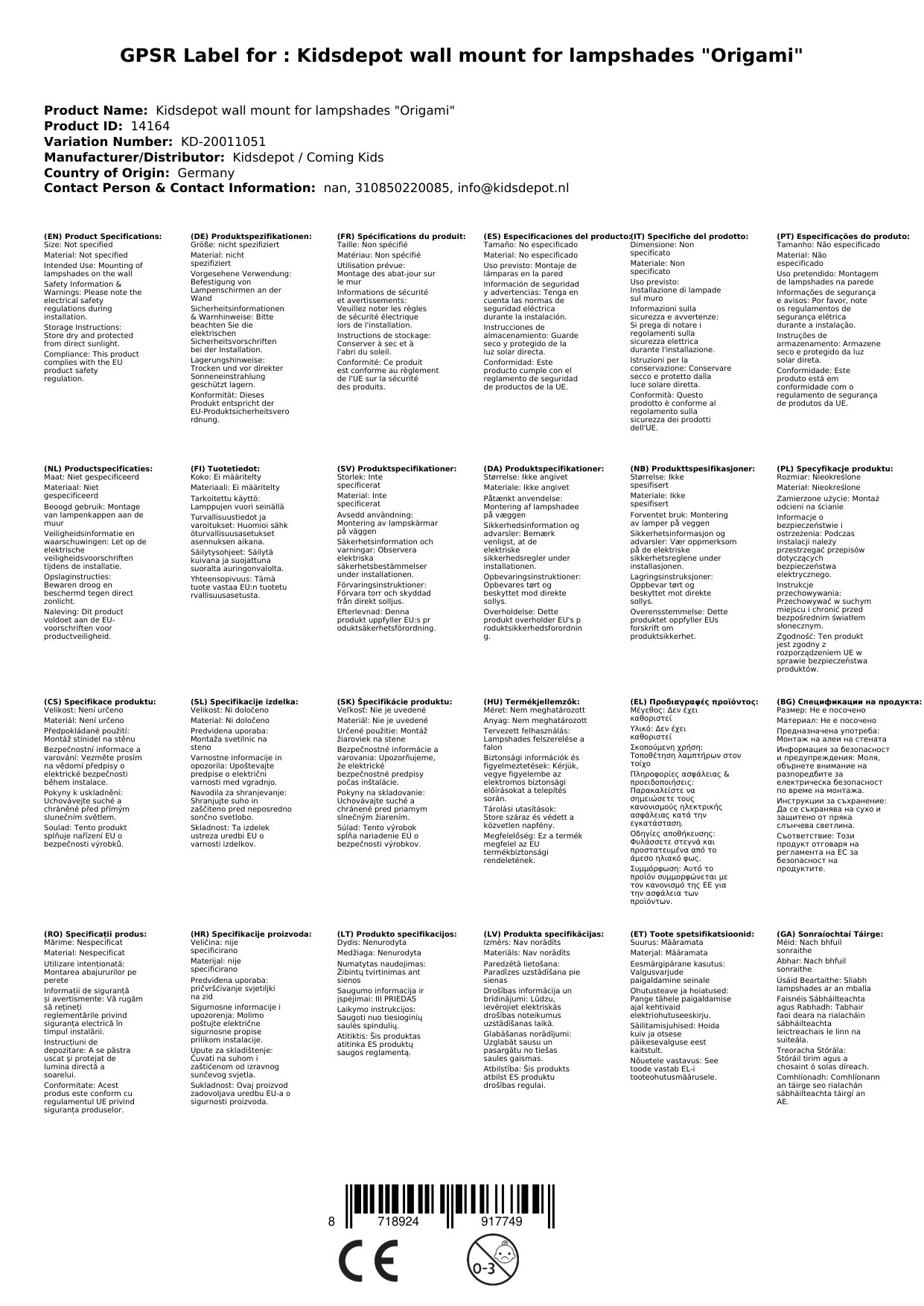 Die Kidsdepot Wandhalterung für Lampenschirme 'Origami' verkörpert höchste Qualität und bietet eine flexible Möglichkeit, Ihre Wandlampen an jedem gewünschten Ort aufzuhängen. Der Verzicht auf Kabel und Fassung gibt Ihnen die Freiheit, Ihr Zuhause mit einer individuellen Beleuchtungslösung zu bereichern.