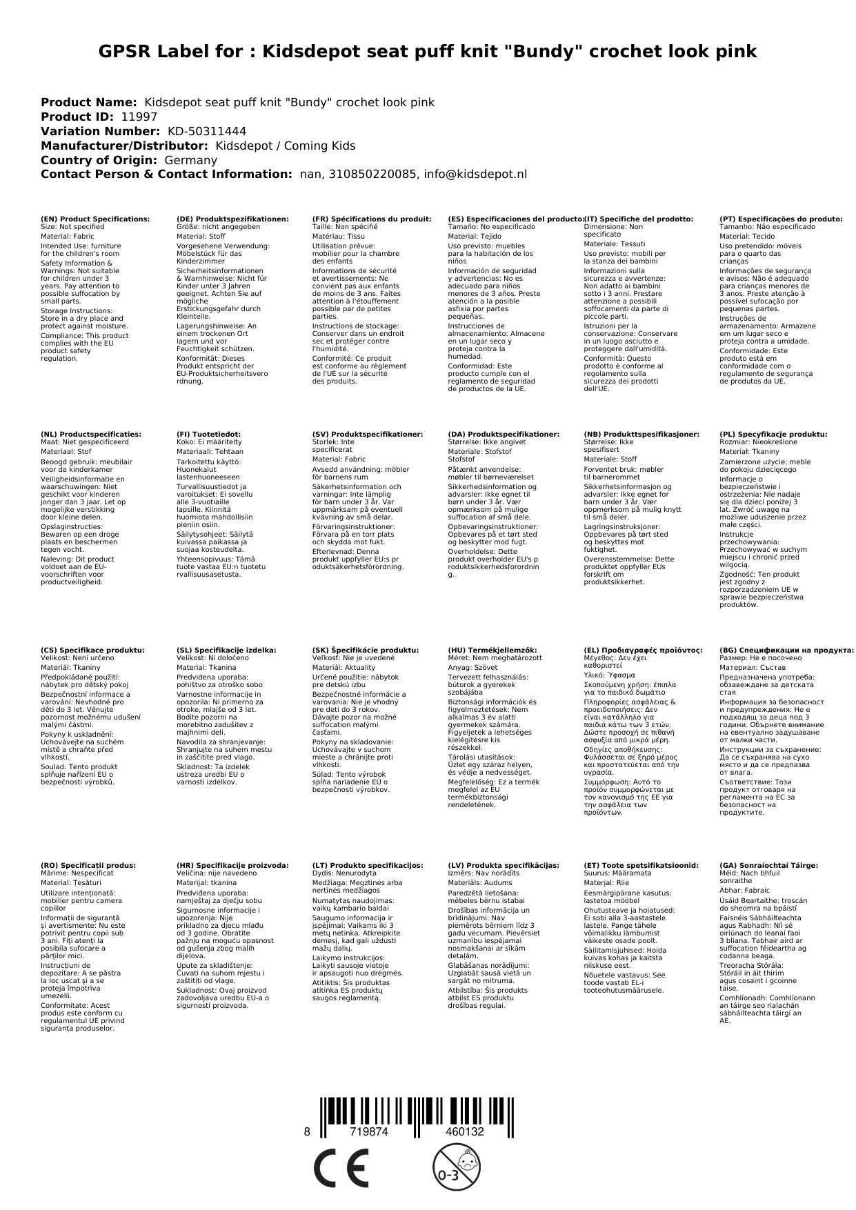 Der Kidsdepot Sitzpuff Strick 'Bundy' ist nicht nur ein Möbelstück, sondern ein Ausdruck von Stil und Komfort im Kinderzimmer. Er verbindet Ästhetik mit Funktionalität und schafft eine Atmosphäre, in der sich Kinder geborgen und zugleich kreativ entfalten können.