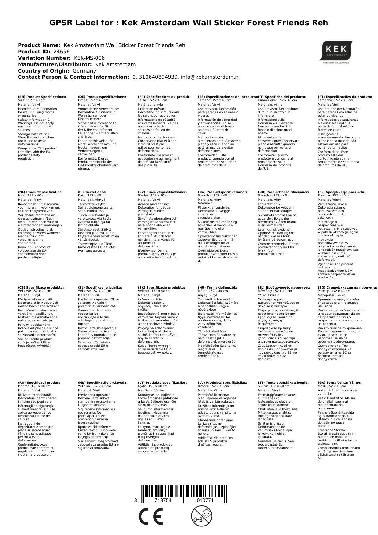 | Wenn der Wandsticker nicht vorrätig ist, bestellen wir ihn sofort bei Kek in Amsterdam für Sie nach. Die aktuelle Lieferzeit sehen Sie oben neben dem Produktfoto. | Originaltext vom Hersteller Die Wandsticker werden aus einer schönen und hochwertigen Wandfolie hergestellt. Die Folie ist sehr dünn, so dass sie keinen Höheunterschied bekommen.