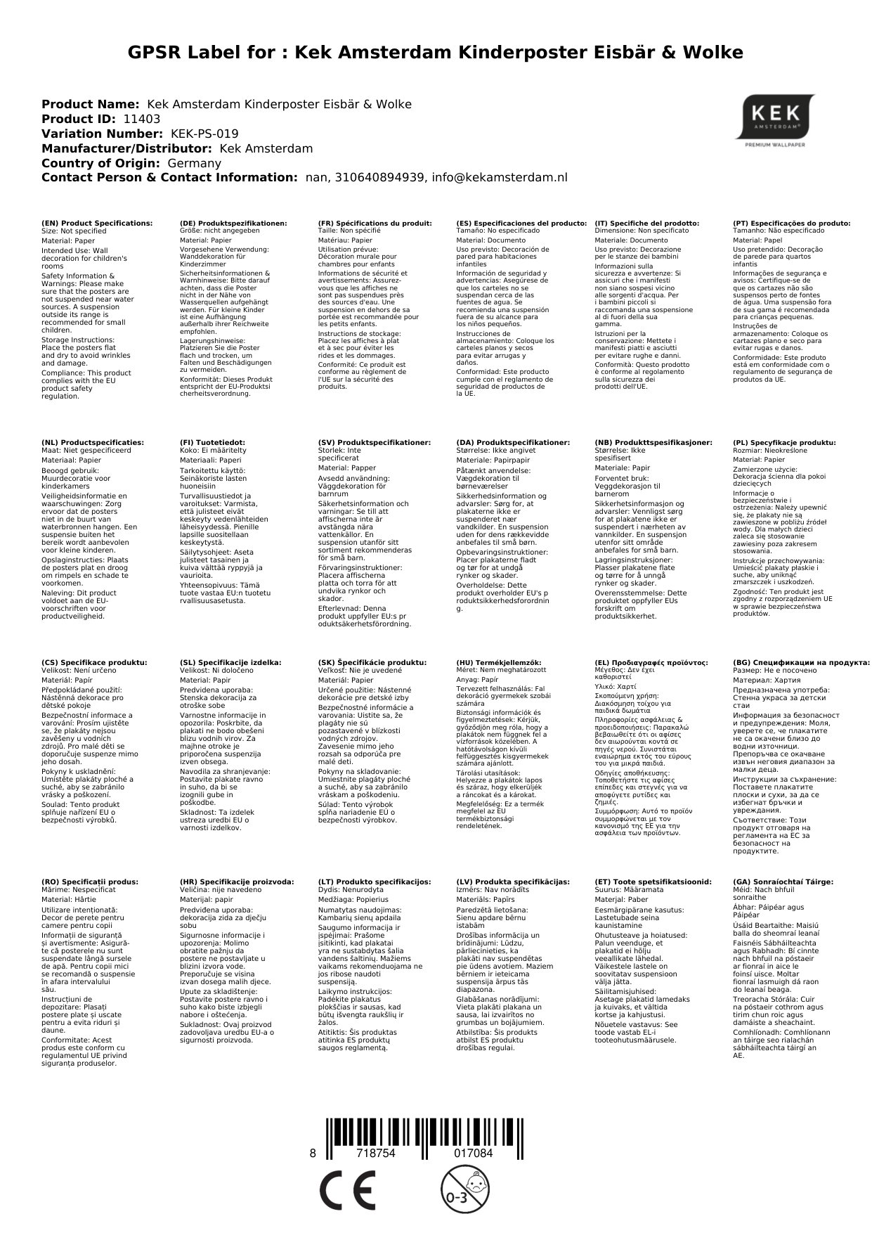 Kek Amsterdam Kinderposter Eisbär & Wolke
