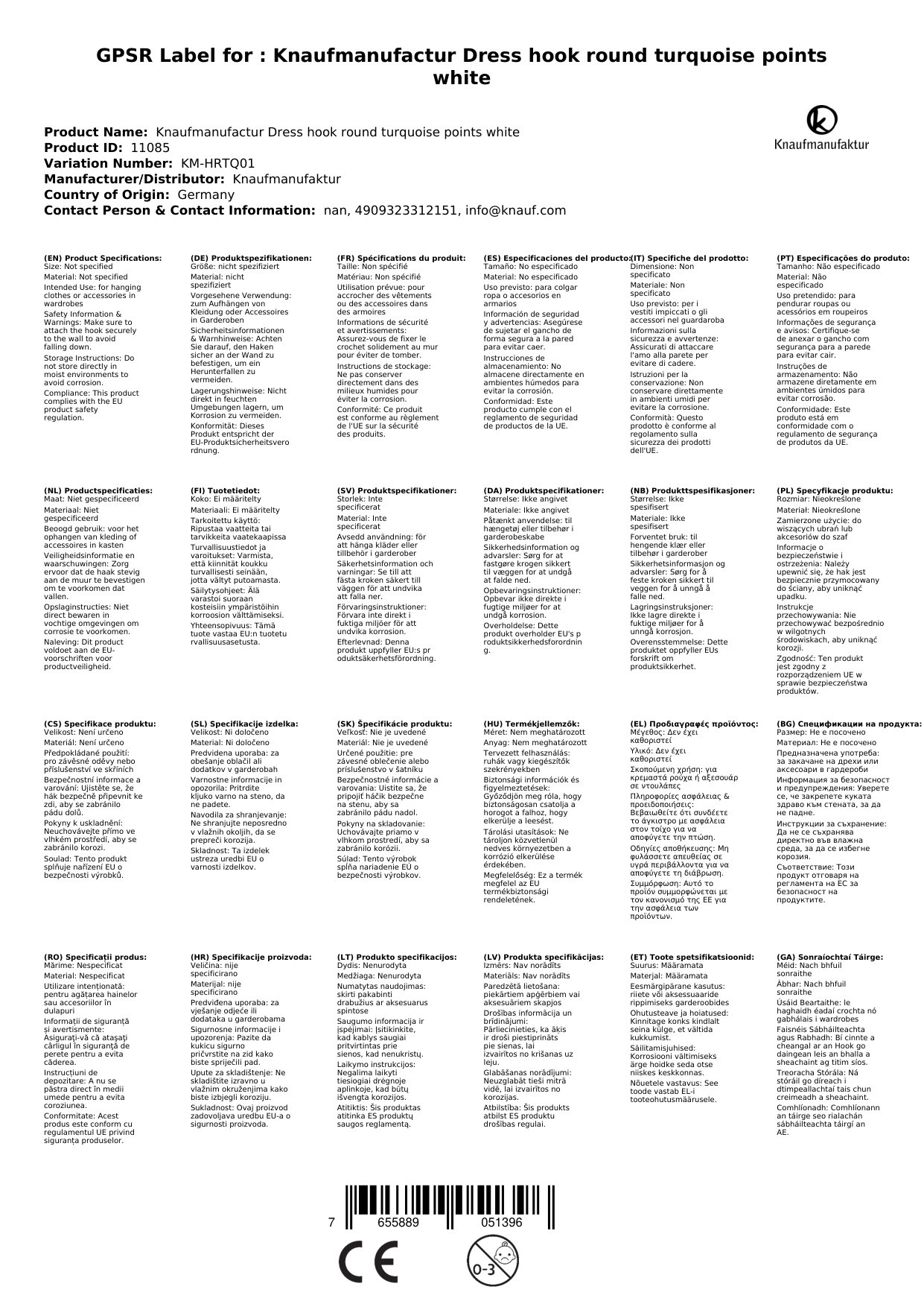 Knaufmanufaktur Kleiderhaken rund türkis Punkte weiss