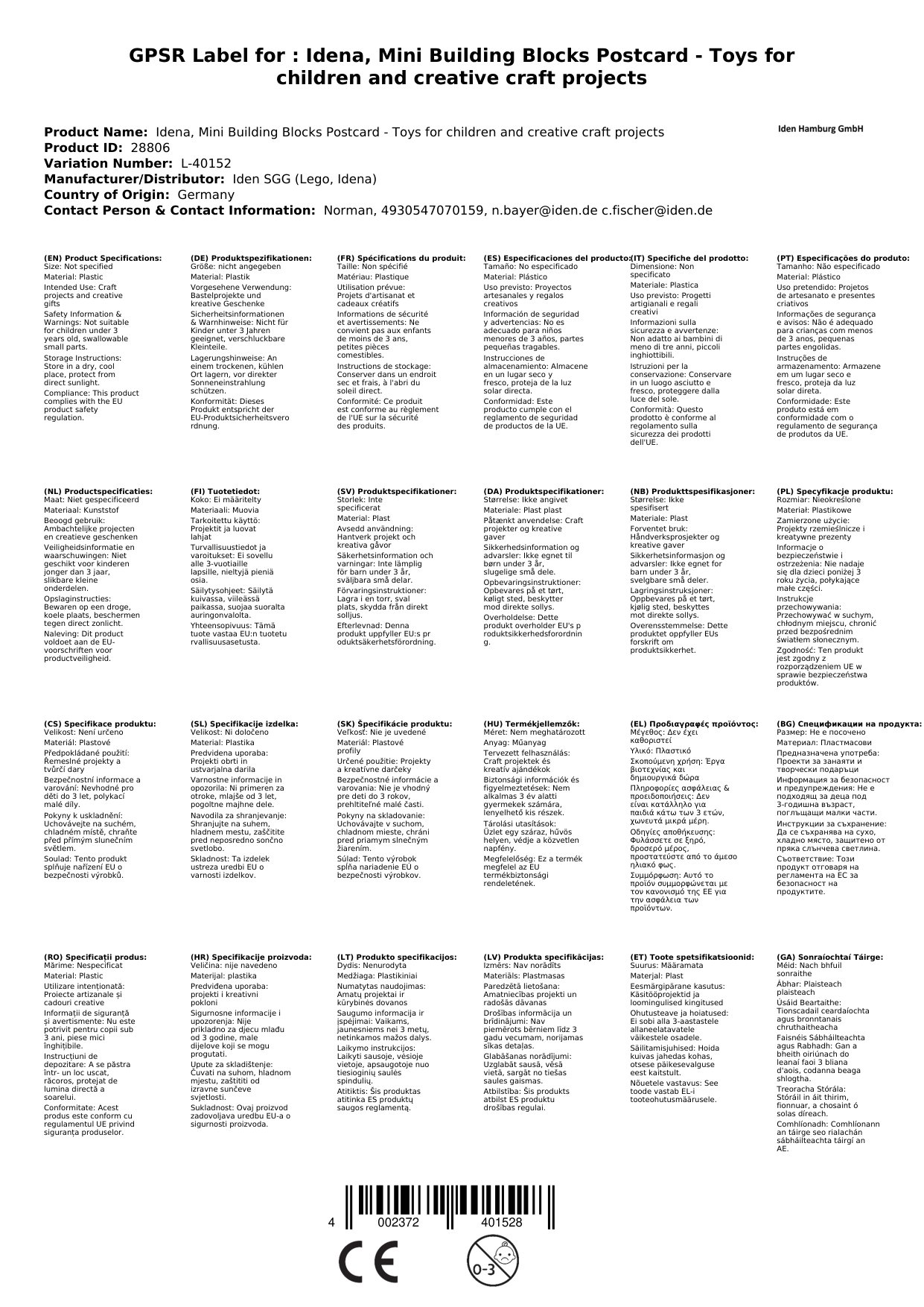 Idena, Minibausteine Postkarte - Spielwaren für Kinder und kreative Bastelprojekte, Art: Geschenk