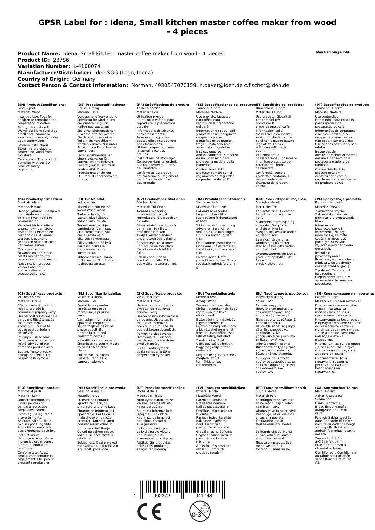 Stellen Sie eine Frage, um mehr über das Produkt zu erfahrenKleine Küchenmeister Kaffeemaschine – 4-teilig aus Holz