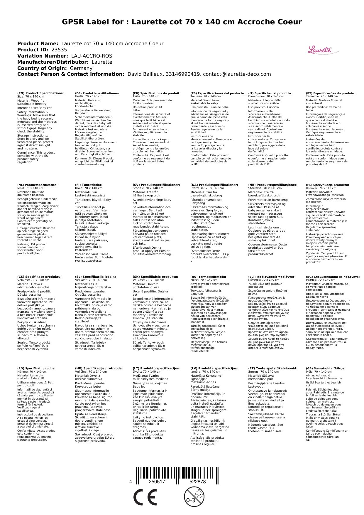 Wir freuen uns darüber, dass wir Ihnen dieses wunderbare Babybett 'Lit l`Accroche coeur' von Laurette präsentieren können.