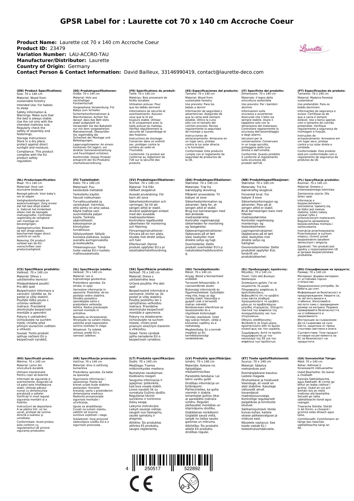 Wir freuen uns darüber, dass wir Ihnen dieses wunderbare Babybett 'Lit l`Accroche coeur' von Laurette präsentieren können.