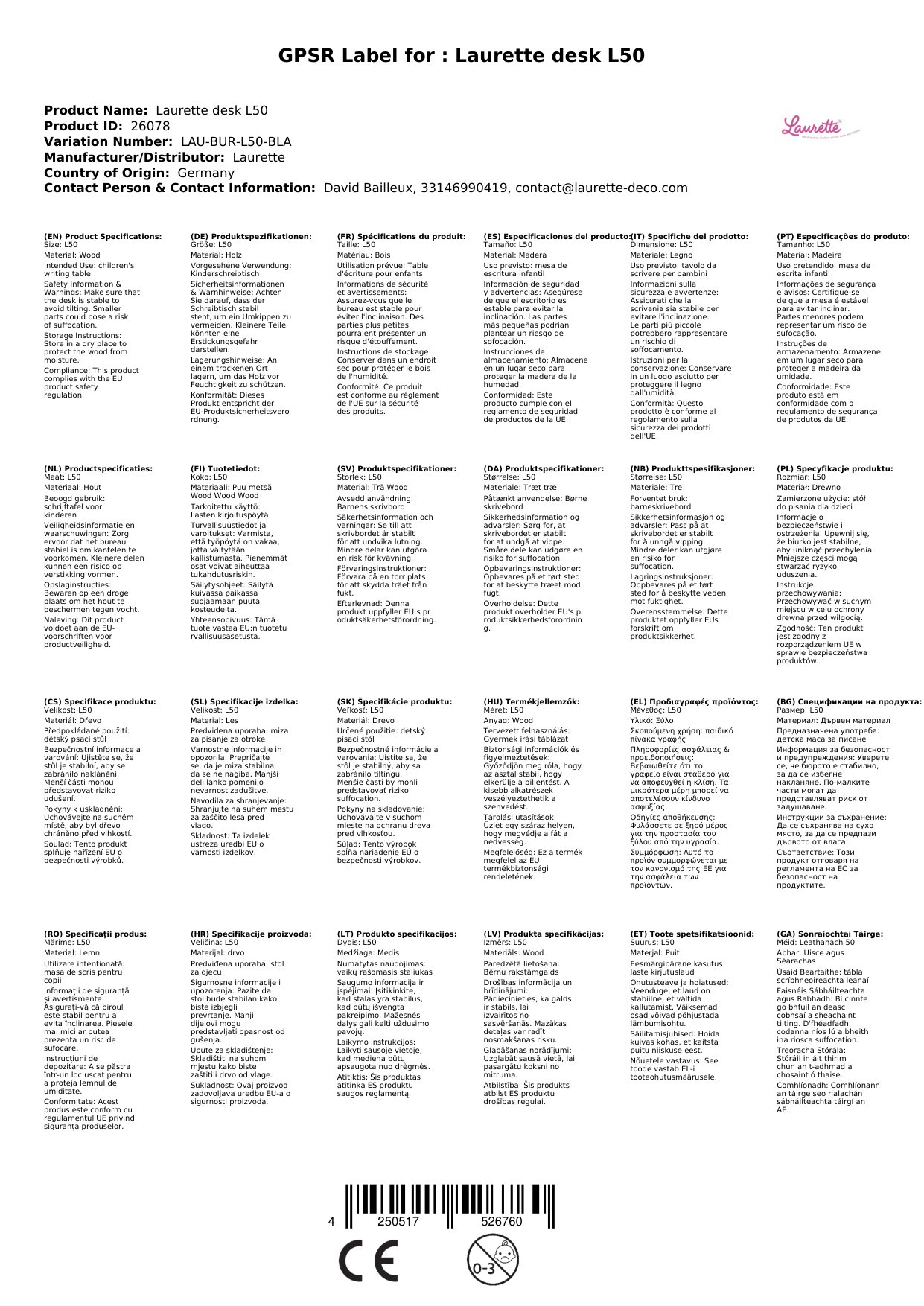 Wir freuen uns darüber, dass wir Ihnen diesen wunderbaren Kinderschreibtisch 'L50' von Laurette präsentieren können.