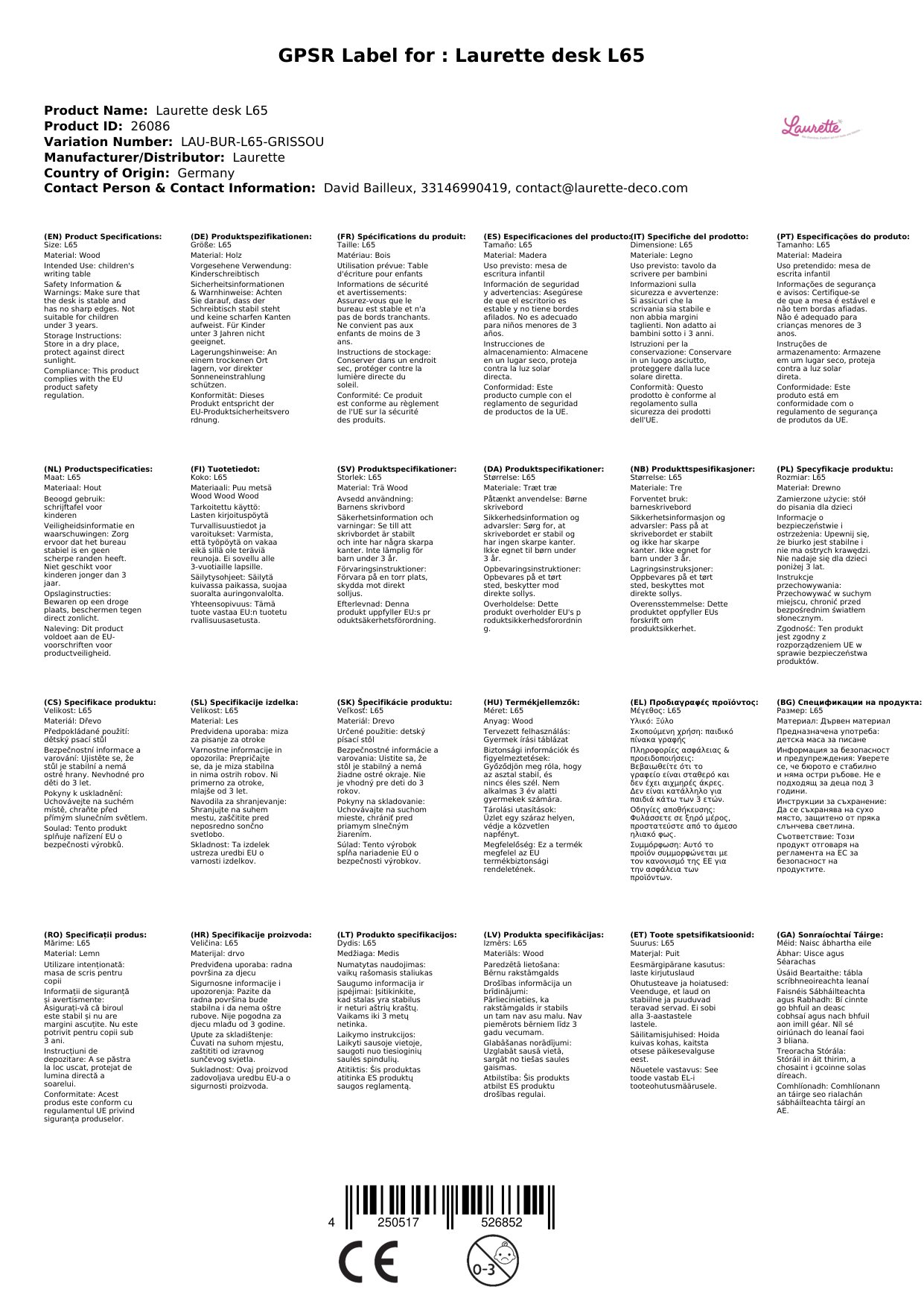 Wir freuen uns darüber, dass wir Ihnen diesen wunderbaren Kinderschreibtisch 'L65' von Laurette präsentieren können.