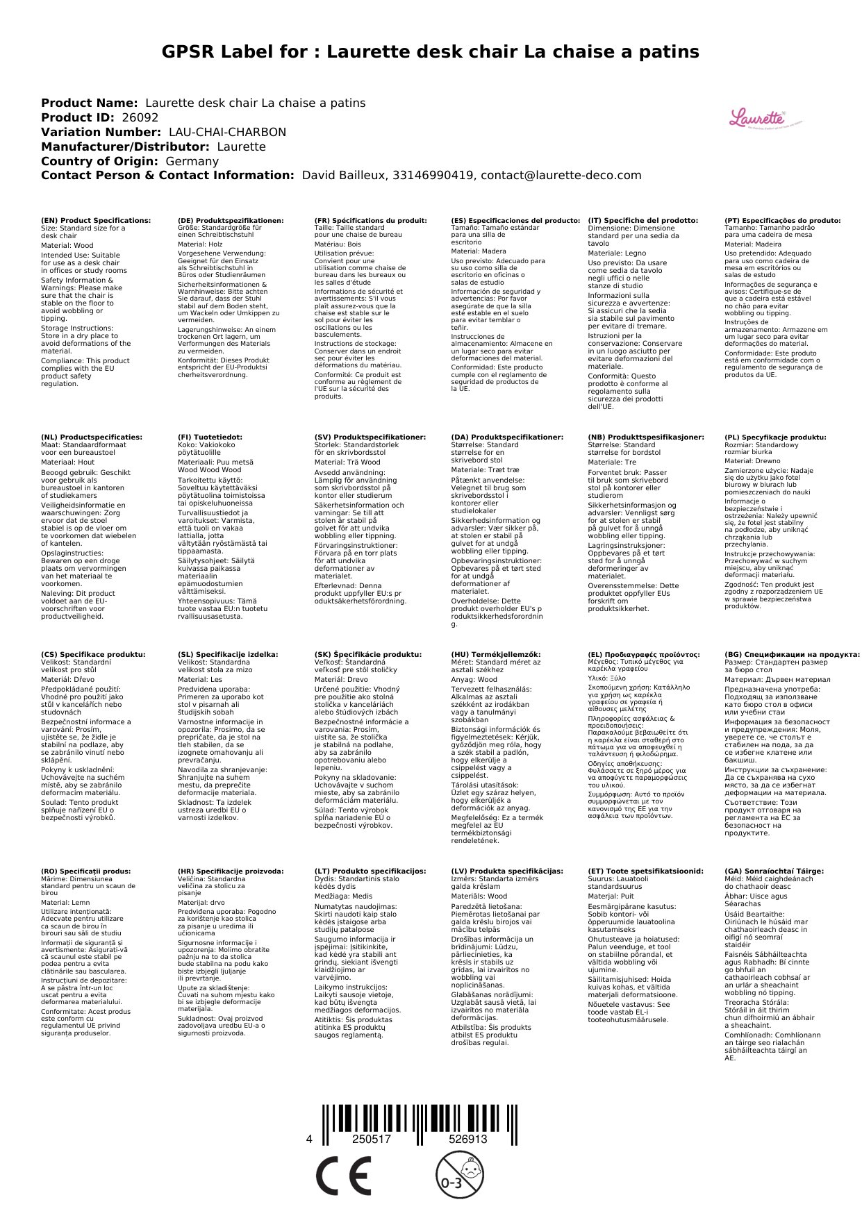 Wir freuen uns darüber, dass wir Ihnen diesen wunderbaren Schreibtischstuhl 'La chaise a patins' von Laurette präsentieren können.
