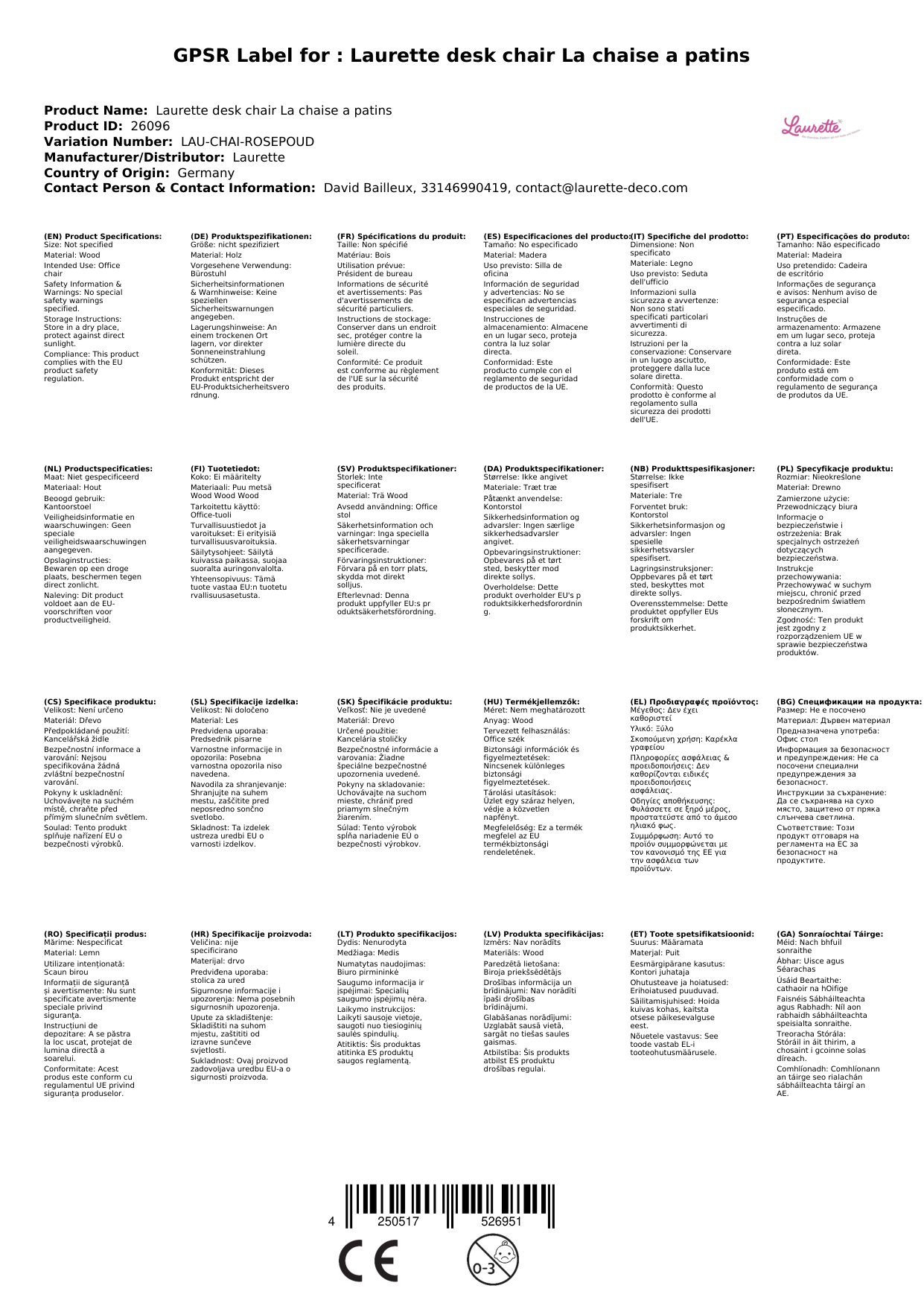 Wir freuen uns darüber, dass wir Ihnen diesen wunderbaren Schreibtischstuhl 'La chaise a patins' von Laurette präsentieren können.