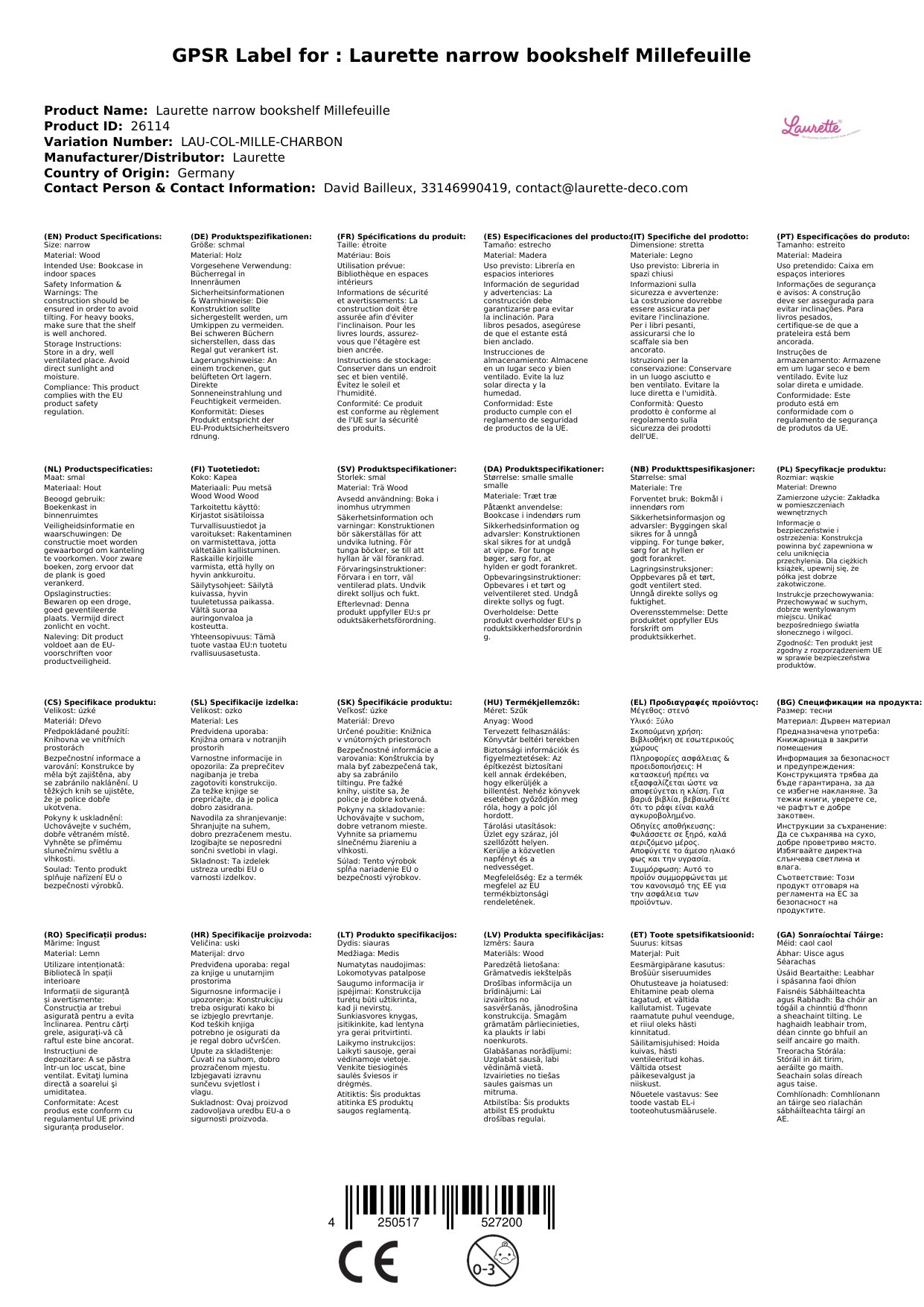 Laurette schmales Bücherregal Millefeuille, Farbe: Charbon