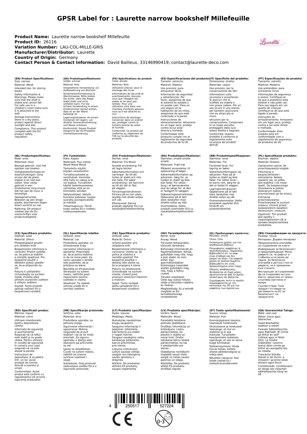 Laurette schmales Bücherregal Millefeuille, Farbe: Gris