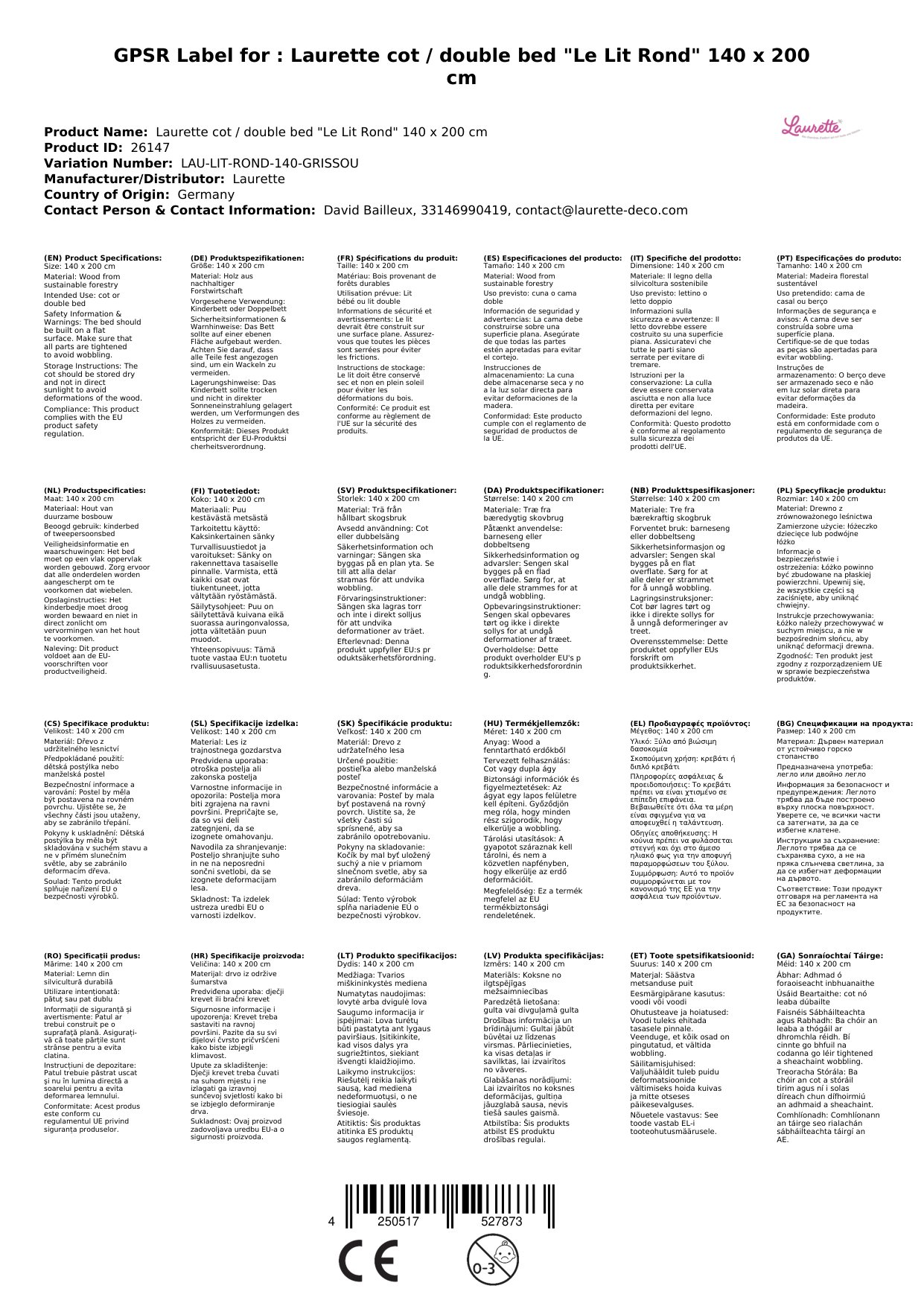Laurette Kinderbett / Doppelbett "Le Lit Rond" 140 x 200 cm, Farbe: Gris Souris