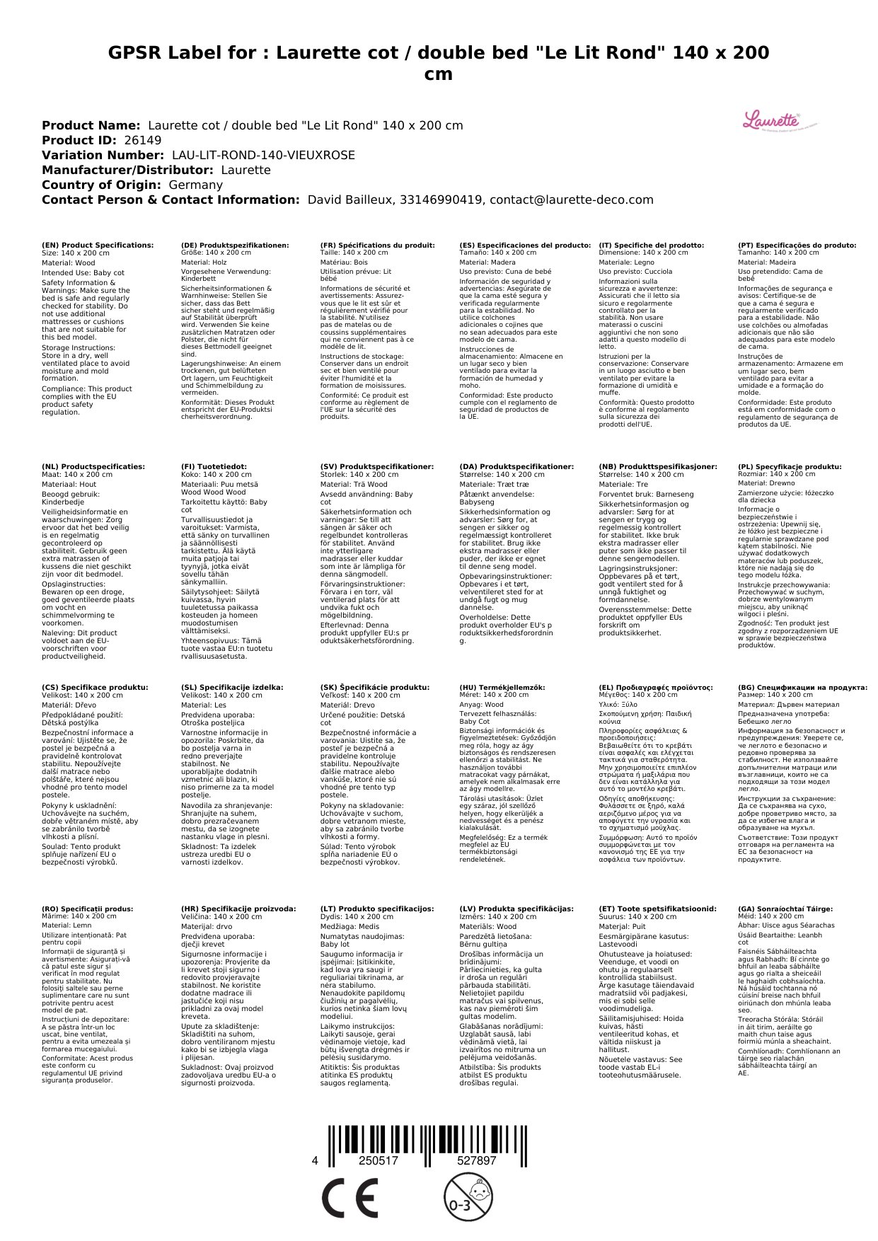 Wir freuen uns darüber, dass wir Ihnen dieses wunderbare Kinderbett 'Le Lit Rond' von Laurette präsentieren können.
