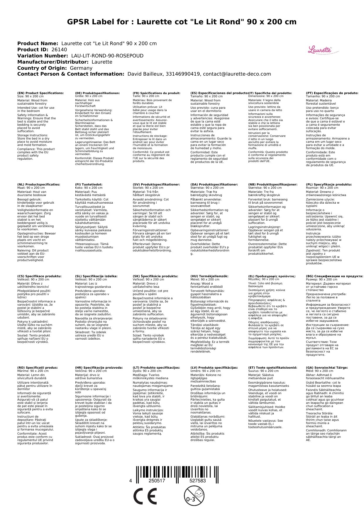 Wir freuen uns darüber, dass wir Ihnen dieses wunderbare Kinderbett 'Le Lit Rond' von Laurette präsentieren können.
