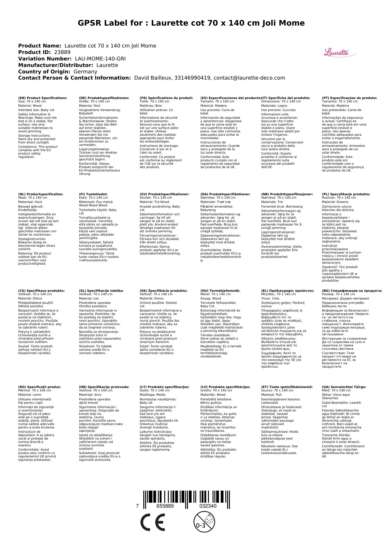 Wir freuen uns darüber, dass wir Ihnen dieses wunderbare Babybett 'Lit Joli Mome' von Laurette präsentieren können.