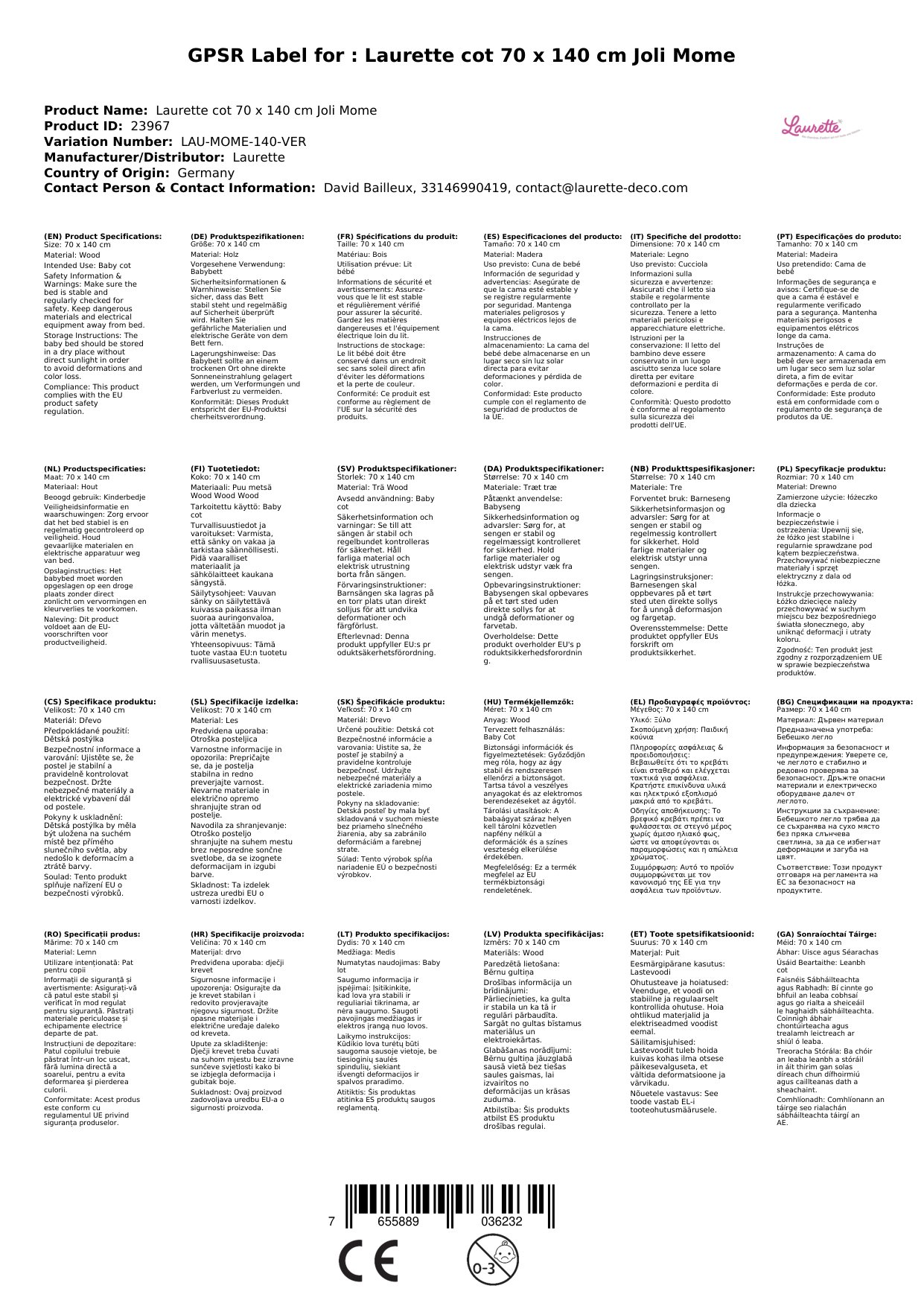 Wir freuen uns darüber, dass wir Ihnen dieses wunderbare Babybett 'Lit Joli Mome' von Laurette präsentieren können.