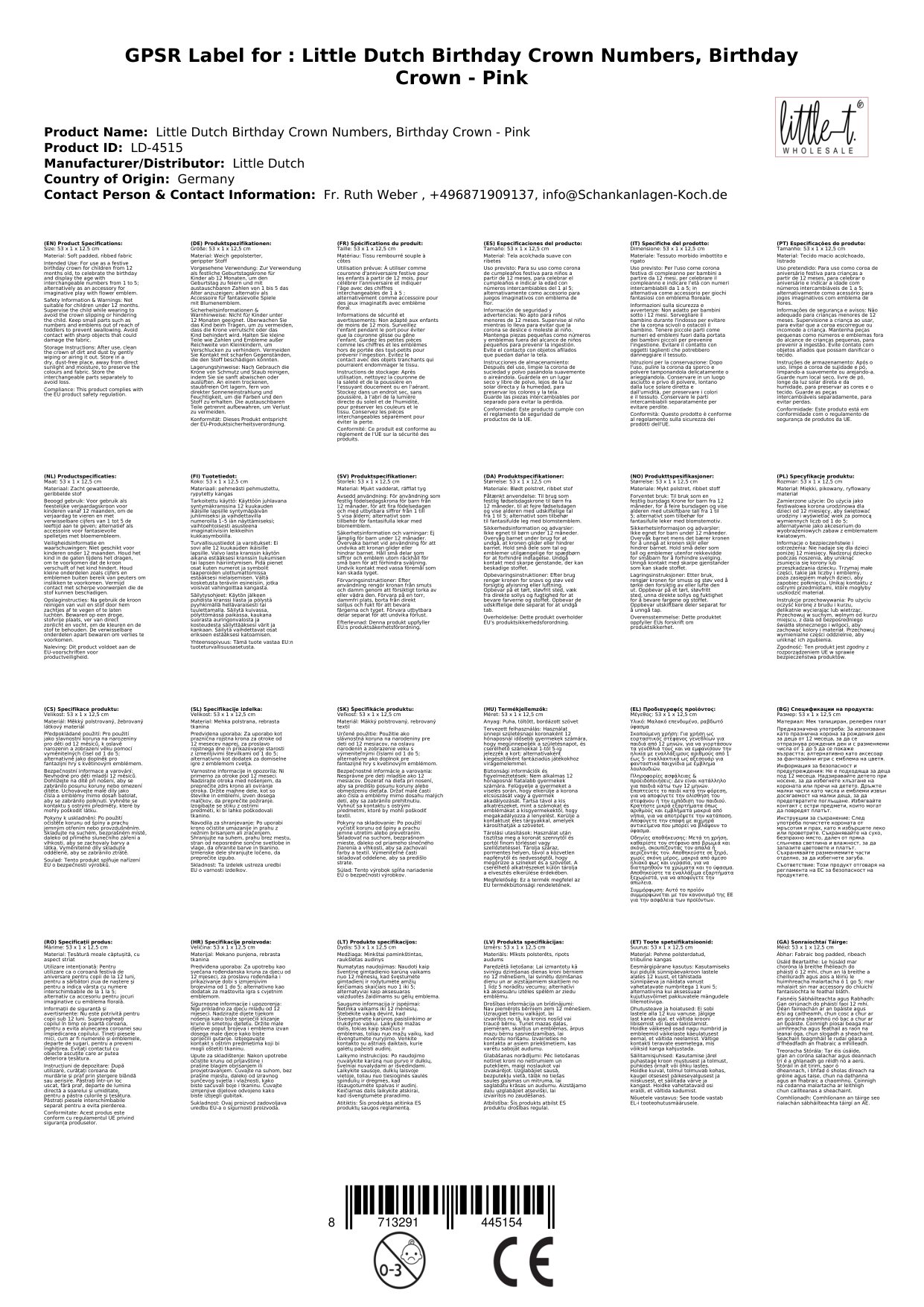 Für alle kleinen Prinzessinnen und Prinzen, die sich nicht nur am Geburtstag königlich fühlen möchten, bietet die Krone ein zusätzliches Blumenemblem. Dieses kann anstelle der Zahlen angebracht werden und verwandelt die Krone in ein alltagstaugliches Accessoire für fantasievolle Spiele im Kinderzimmer.