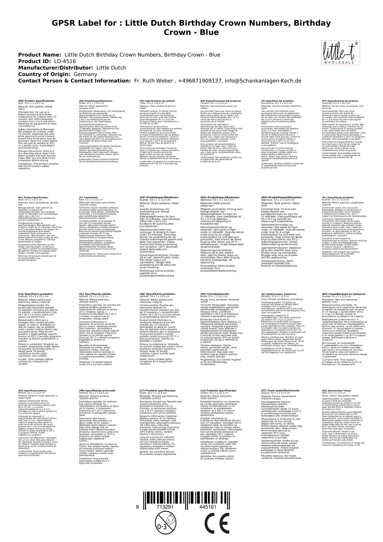 Stellen Sie eine Frage, um mehr über das Produkt zu erfahrenLittle Dutch Geburtstagskrone Zahlen, Krone Geburtstag - Blau