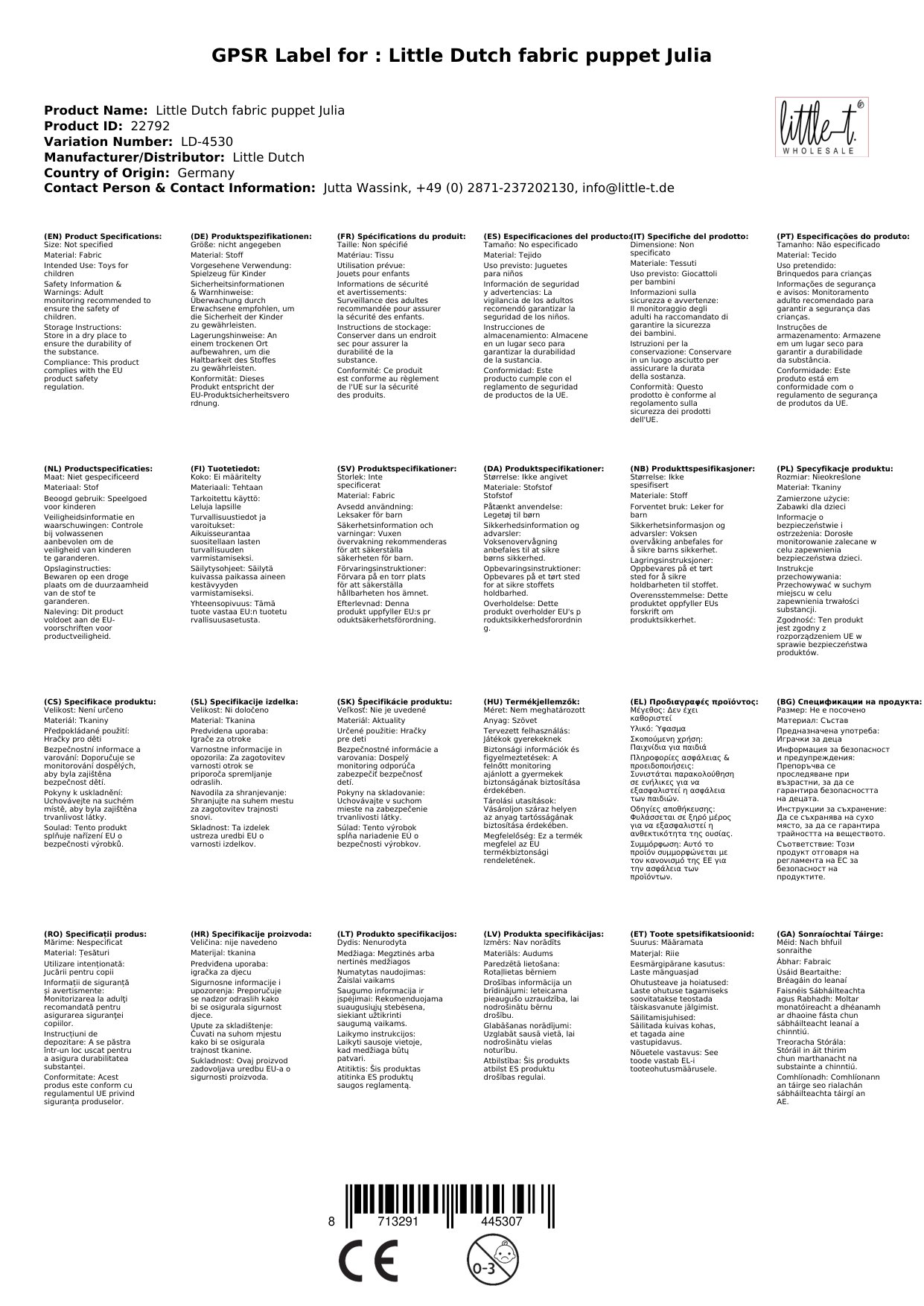 Diese niedliche und kuschelig weiche Puppe kann Ihr Kleines von Geburt an begleiten. Ihr Kind wird seine Puppe auf der Stelle ins Herz schliessen und mir ihr die tollsten Dinge erleben und lernen. Eine Puppe ist der perfekte Begleiter und Tröster in allen Lebenslagen und das für immer ... Sie kann übrigens auch sitzen.