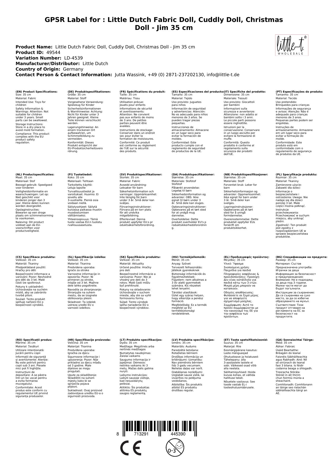 Stellen Sie eine Frage, um mehr über das Produkt zu erfahrenLittle Dutch Stoffpuppe, Kuschelpuppe, Weihnachtspuppe - Jim 35 cm