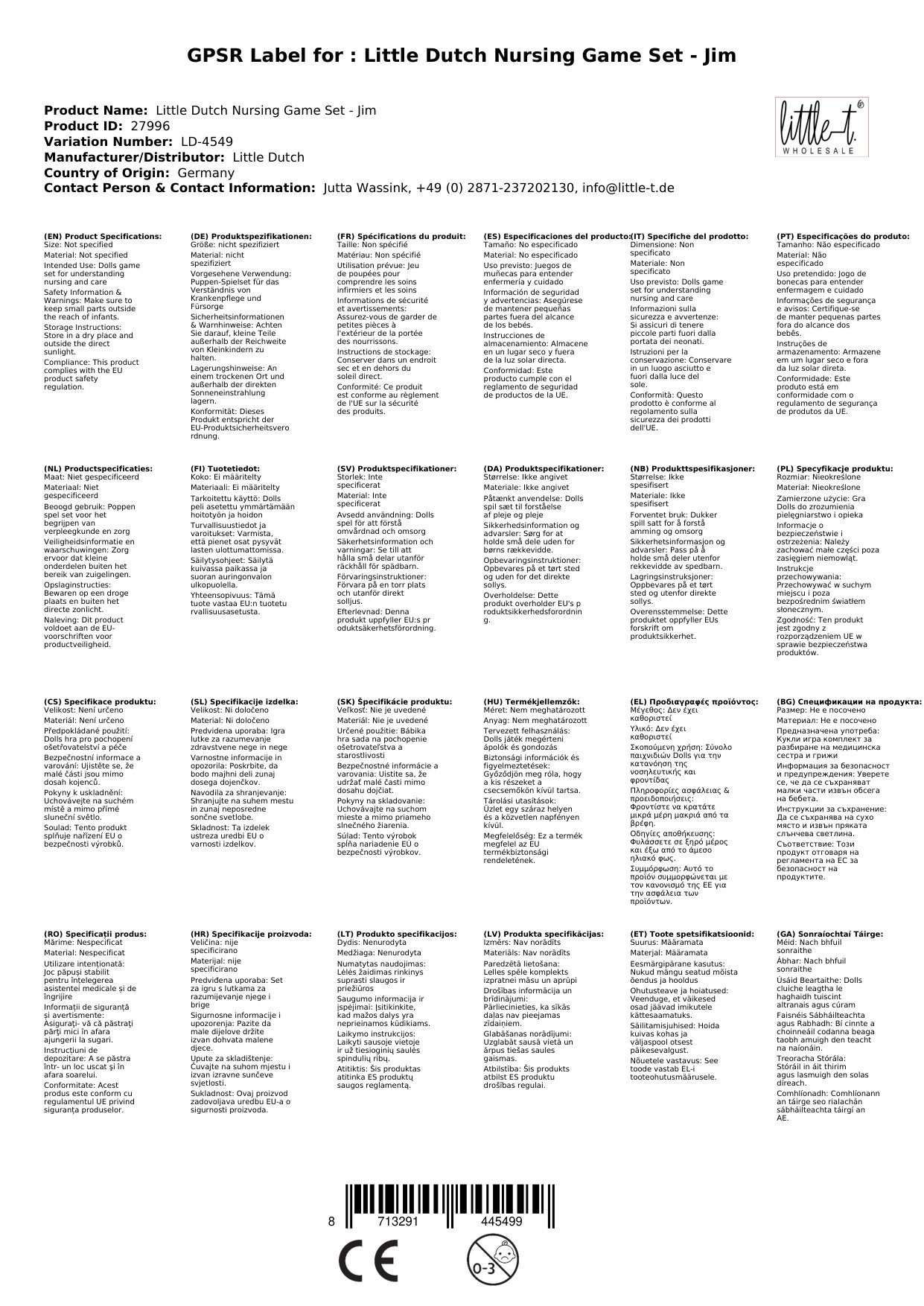 Stellen Sie eine Frage, um mehr über das Produkt zu erfahrenLittle Dutch Krankenpflege Spielset - Jim