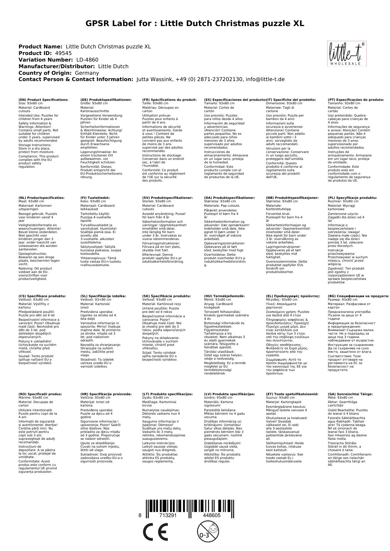 Stellen Sie eine Frage, um mehr über das Produkt zu erfahrenLittle Dutch Weihnachtspuzzle XL