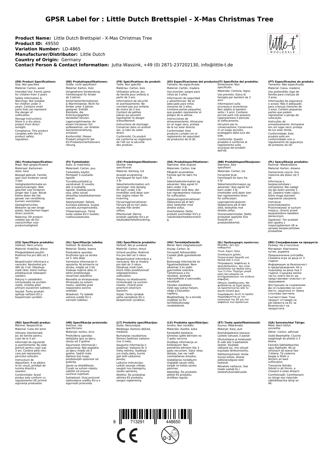Die Produktgröße beträgt 25,5x21,5x51 cm und die Farben sind mehrfarbig. Das Spiel ist Teil der Christmas-Kollektion von Little Dutch und bietet stundenlangen Spaß für die ganze Familie.